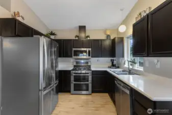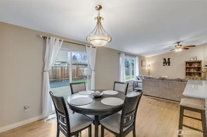 Fantastic opportunity to live in a desirable community just off Sunrise Blvd and within the highly sought-after Puyallup School District! This home offers an open-concept layout with seamless flow between the living room, dining area, and kitchen—perfect for everyday living and entertaining.The spacious kitchen features a large island with breakfast bar seating, additional storage, stainless steel appliances, and resin countertops. The washer and dryer stay! Enjoy cozy evenings by the gas fireplace and appreciate the newer plank flooring, updated trim, and fresh interior paint throughout. Major updates include a 30-year roof (only 10 years old), newer gas furnace, and a hot water tank that’s just one year old—giving you peace of mind. The primary suite features dual sinks in the bathroom for added convenience.Outside, you’ll find a nicely sized fenced backyard with garden space and huge 32X20 Newly Poured Concrete Patio-ideal for relaxing or hosting gatherings. The two-car garage includes built-in shelving and a storage loft for all your tools and extras. Shed is staying!Move-in ready with thoughtful updates throughout—don’t miss this one!