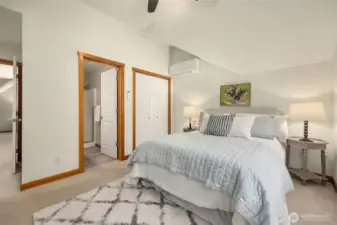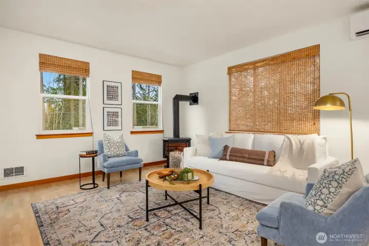Live effortlessly in the heart of Winslow in this detached 2BR/2.5BA townhome offering comfort, flexibility, and exceptional walkability. The main level features bright living and dining spaces plus a well-appointed kitchen with generous counter space and a walk-in pantry. Step outside to a sunny, south-facing balcony which makes an ideal spot to unwind at the end of the day, or host friends for gatherings and entertaining. Upstairs, two ensuite bedrooms with vaulted ceilings provide a relaxing private retreat, while the lower level offers a flex bonus room—perfect for a media space, guest room, gym, or home office. Featuring new mini-splits with heating and cooling (2025), a 2-car garage, and a shared home generator. Enjoy the best of in-town living with easy access to morning coffee runs, boutique shopping, dining with friends, or catching a movie at Bainbridge Cinemas. Just minutes from the ferry, offering an easy and convenient commute to Seattle and all of the city’s amenities. Truly a rare opportunity for seamless living in one of Bainbridge Island’s most vibrant locations!