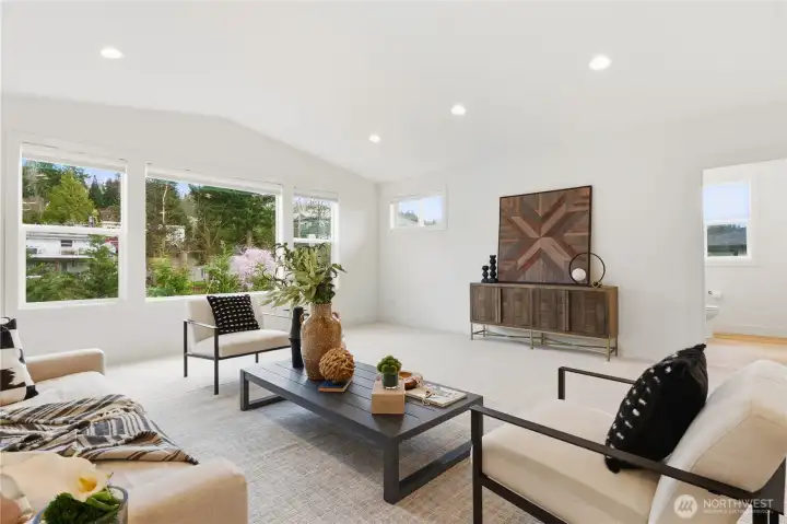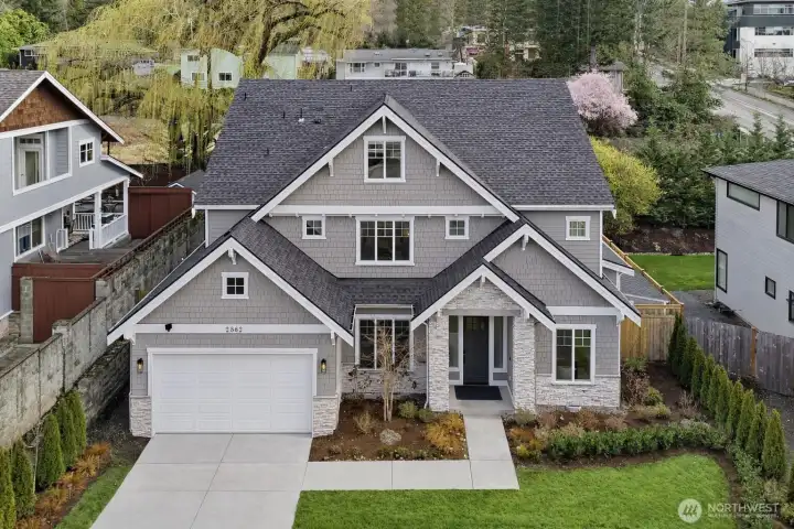 Experience refined luxury in this exceptional MN Custom Homes resale, where timeless Craftsman architecture meets sophisticated contemporary design. Perfectly positioned in the highly sought-after Woodridge neighborhood of Bellevue, this stunning home offers both elegance and everyday comfort. Step inside to a breathtaking two-story great room, where soaring ceilings and walls of windows flood the home with natural light. Chef’s kitchen features premium Wolf and Sub-Zero appliances, custom cabinetry, and an oversized island. A covered outdoor patio extends the living space, perfect for year-round relaxation and hosting.Upstairs, a spacious bonus room offers flexible space for media, recreation, or living. The thoughtful layout includes a main-floor guest en-suite, ideal for visitors or multi-generational living. The luxurious primary suite upstairs features vaulted ceilings and a spa-inspired bath with heated floors, creating a peaceful private retreat. Additional 3 bedrooms include a mini primary en-suite, offering comfort and privacy.Designed for modern lifestyles, the home also includes a dedicated work-from-home office and integrated smart home technology throughout.Located within top-rated Bellevue schools—Woodridge Elementary, Chinook Middle, and Bellevue High—and just minutes from DT Bellevue, I-90, Microsoft and the Spring District. Close to Creek Park and Bellevue Botanical Garden, this home offers the perfect balance of nature, convenience, and luxury living.
