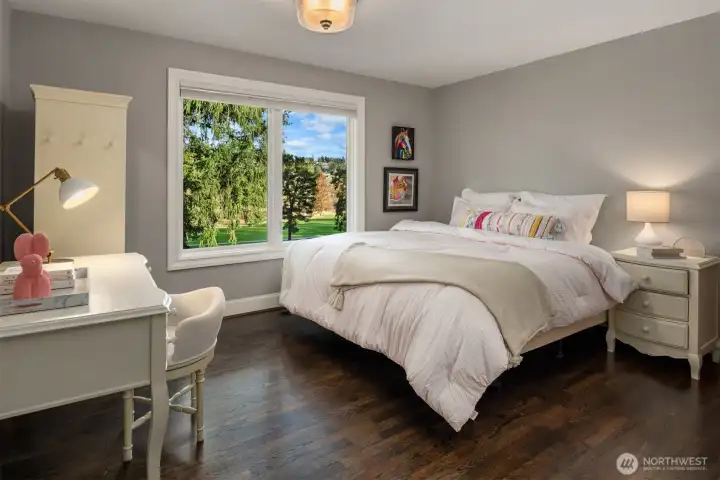 East Coast sophistication & timeless style privately nestled on one of Medina’s most prized avenues. Situated on nearly ¾ of an acre overlooking the 5th green of renowned Overlake Golf & Country Club, this home offers a fresh take on traditional with an open floor plan designed for effortless entertaining and easy everyday living. Sun-drenched, refined spaces include a soaring living room, family room with French doors to the view deck, and an eat-in kitchen with room for many chefs. 5 bedrooms including 3 on the main level and a view primary suite offering verdant golf course views and a spa-like bath with gorgeous Calacatta marble. The lower level boasts a rec room with wet bar and kitchenette, exercise room, and an additional bedroom + bath. Lush, tranquil outdoor living areas for gathering and soaking in the view. Treasured privacy within minutes of top-rated schools, prized Medina parks, the lake, commutes and everything Downtown Bellevue has to offer.