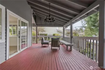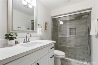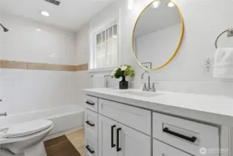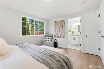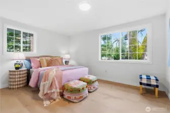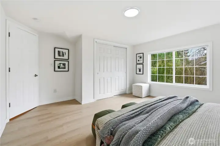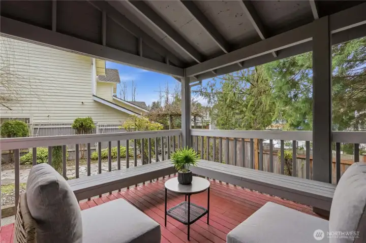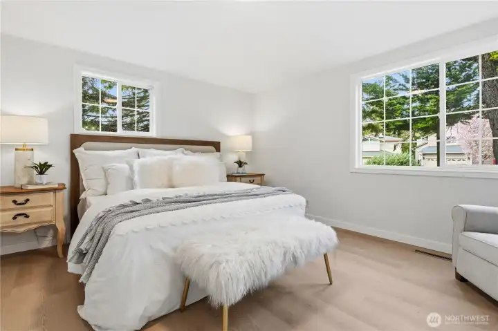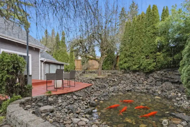 Welcome to this cozy 2-story home nestled in a quiet cul-de-sac in desirable Newport Hills, offering convenience and privacy. Located just minutes to I-405, I-90, Factoria Mall, and Downtown Bellevue, this home combines comfort, style, and an unbeatable location. The home features a fully renovated kitchen with brand-new appliances, completely remodeled bathrooms, new flooring throughout, and fresh interior paint, creating a bright and modern living environment. Outside, new landscaping enhances the curb appeal and overall serenity of the property. Enjoy the spacious living and dining area with an expansive fireplace that opens onto a covered wraparound deck, perfect for relaxing or entertaining. The kitchen and solarium feature dramatic cathedral ceilings, bringing in abundant natural light. The main level includes a primary ensuite, a formal dining room (or additional bedroom), an office, bathroom, and utility room. Upstairs offers three additional bedrooms, a full bathroom, a bonus room, and extra storage space. Step outside to a fully fenced, private Asian-inspired garden, beautifully designed with a waterfall and large koi pond, creating a peaceful retreat right in your backyard. Located within the highly rated Bellevue School District, making this home an excellent choice for anyone seeking top-tier schools.