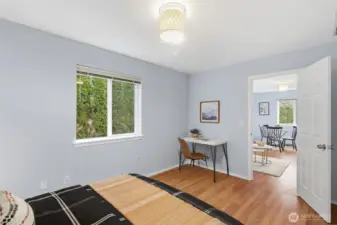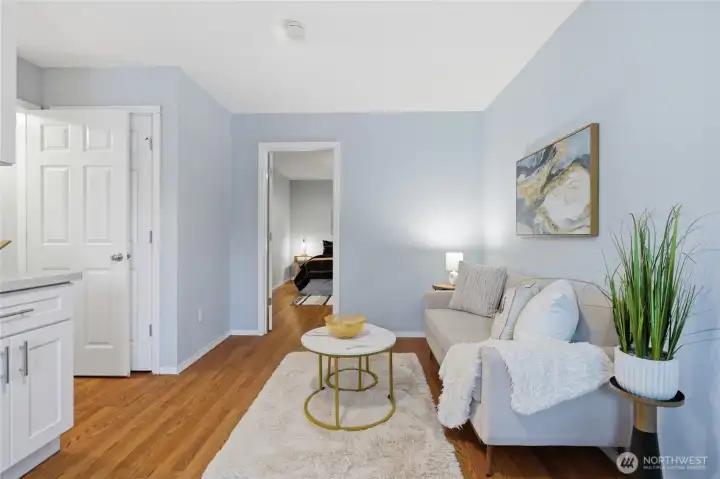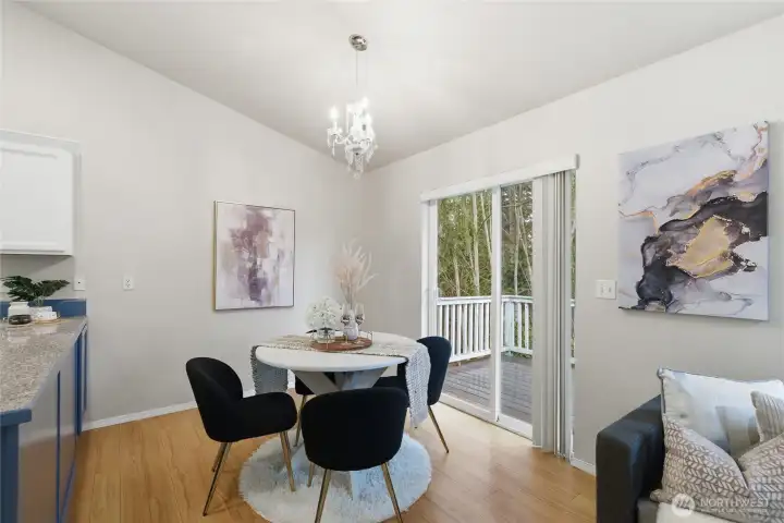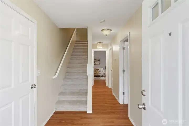 Welcome to the peaceful comfort of this home in a privately gated community of just 18 homes. Situated on a corner lot, the flexible layout offers 2 bedrooms, 1 bath, kitchenette, and bonus space on the main level—ideal for MIL living, guests, or house-hack potential. Upstairs features bright, vaulted living spaces with a spacious kitchen and eating area, open living and dining areas, and a cozy family room with gas fireplace—perfect for everyday living and entertaining. Step onto the private balcony with composite decking to relax and unwind. This level also includes an additional bedroom and a primary suite with a walk-in closet featuring a built-in closet system and a bathroom with new LVP flooring. Recent updates include NEW carpet, NEW furnace with 10-year warranty, 2022 roof with 20-year warranty, and 2020 water heater. Extra finished room off the 2-car garage adds flexibility. HOA covers gate and landscaping. Conveniently located near parks, trails, beaches, Boeing, Paine Field Airport, and easy access to Hwy 99, I-5, and 405. Located in the award-winning Mukilteo School District.