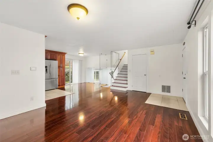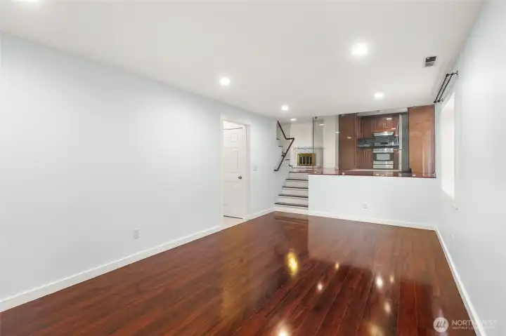 Beautifully updated tri-level home with basement in a quiet Renton neighborhood offering 4 bedrooms and 3 bathrooms with multiple flexible living spaces. Though out the house features rich Laminate flooring, abundant natural light, and a striking glass staircase railing that creates a modern architectural focal point. The remodeled kitchen includes custom wood cabinetry, granite countertops, stainless steel appliances, and a contemporary tile backsplash with generous storage and workspace. Upstairs features spacious bedrooms with large windows and an updated primary bath with modern finishes. The lower level and basement provide excellent flexibility with a large room featuring a fireplace—ideal for media, hobbies, workspace, or additional living area. Outside, the tiered backyard features lawn areas and natural rock retaining walls with space for outdoor seating, gardening, or relaxing. Additional highlights include updated bathrooms, stainless appliances, Laminate flooring, attached garage, and additional driveway parking. Conveniently located near parks, shopping, schools, and major commuting routes, this move-in ready home offers comfort, style, and flexible living space.
