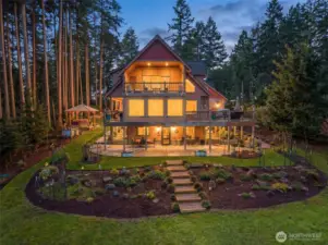 Perched above the Puget Sound, this beautifully crafted custom Anderson Island home offers refined living with sweeping Puget Sound views. The entertainer's kitchen features ample hickory cabinetry, granite countertops, Blanco sink plus high-end appliances which flows seamlessly into the great room with cozy fireplace. Steps away is a cedar sunroom & deck to capture stunning water views. Upstairs, the spacious primary suite includes a sitting area & ample deck for sunrise views, along with a luxurious en suite & large walk-in closet. The lower level offers 2 bedrooms, spacious bathroom, full kitchen & radiant heated floors, plus a separate entry with digital key code—ideal for multi-generational living or vacation rental potential. The property features a massive 2,000+ sq. ft. detached garage with 3 garage bays including a 40-ft RV bay. The fully insulated & heated garage includes a half bath & 400 sq. ft. upstairs flex space plus an on-demand generator for the home. Outside, enjoy a beautifully manicured yard with fruit trees, garden areas, & relaxing hot tub. Located near the local golf course & just 1 mile to the boat launch. This extraordinary property offers more than a home—it offers a lifestyle defined by quiet luxury & breathtaking views. A place where you arrive, exhale, & truly feel at home.
