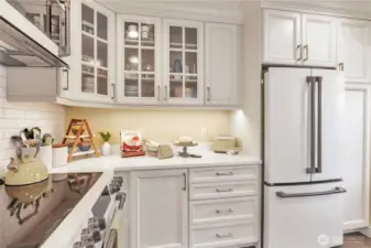 Phinney Ridge Tudor on coveted NW 73rd St — extensively renovated 1928 classic with 2,350 SF, 4 bedrooms & 1-car garage. Rare central A/C (exceptional for vintage Seattle homes), home rewired & updated plumbing. Custom kitchen cabinetry, GE Café appliance suite, refinished original hardwoods, full skim-coat plaster walls & dining room built-ins throughout. Remodeled bath, new ceiling lighting, & Samsung W/D included. Basement workshop adds versatile space. Private fenced backyard with new patio & level lawn. Close to Kirke Park, Whittier Elementary & Greenwood Ave dining. This one feels like new.