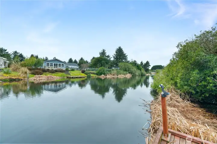 Thoughtfully placed, tastefully designed, and meticulously maintained, this canal-front home is truly a standout. Tucked away on a quiet dead-end street, the property offers a great amount of privacy with a fully fenced yard, lots of room for parking, a private dock, attached garage, and a spacious wraparound deck featuring newer composite decking, perfect for enjoying the views. Inside you will find two bedrooms each with walk in closets and two full bathrooms one of which is a part of the primary en-suite. Skylights and dormer windows fill the living room with natural light, enhancing the vaulted ceilings in the open living space. The kitchen is equipped with granite tile countertops and matching appliances. All pictured furniture included in the sale for added convenience. This property speaks for itself and is ready to welcome you home!