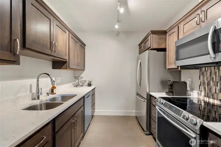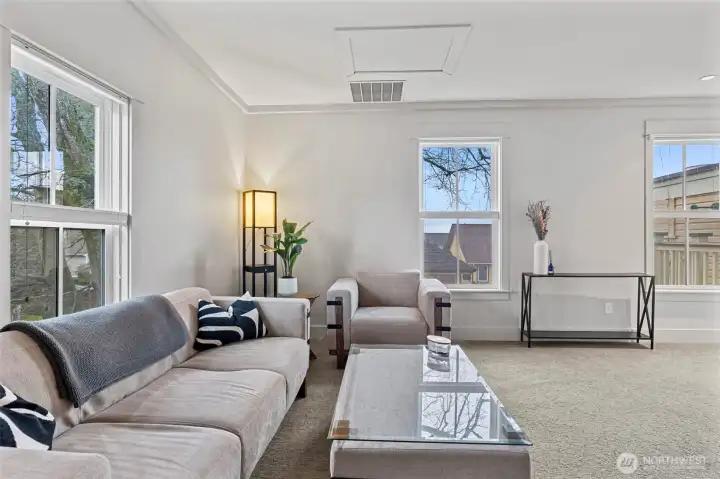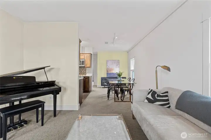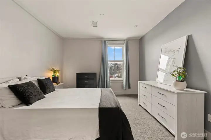 Located on the top floor of the restructured Tillinghast Seed Complex in La Conner, this 2-bedroom condominium offers predictable modernity as well as the intrigue of urban living. The home is a fresh blank slate for your Airbnb or personal residence (part-time or otherwise!). Notice the well-appointed kitchen, bedroom versatility, and in-unit washer and dryer. Whether utilized as a primary residence, a part-time getaway, or a vacation rental investment, the property is move-in ready and includes a dedicated parking space along with additional general parking within the complex. Tillinghast is exceptionally walkable, providing immediate access to the heart of La Conner. Residents are just steps away from the boardwalk, independent boutiques, and renowned waterfront dining along the Swinomish Channel. This central position serves as a convenient base for exploring the local arts scene and the nearby Skagit Valley. If you operate as a short-term rental, your guests will be floored with the ease of La Conner access and will come back time after time, especially for huge events like the fireworks on the reservation.