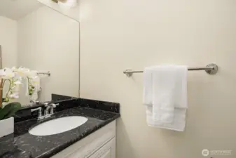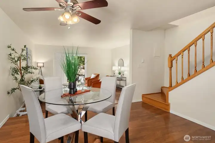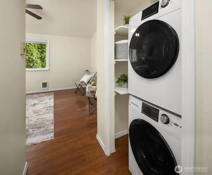 Welcome to Bellantrae Square, a sought-after townhouse-style condo community nestled in the heart of Factoria. This 2 bedroom, 2.25 bath home delivers the perfect balance of function and comfort across two well-designed levels. The main level showcases an open-concept living area filled with natural light, luxury vinyl plank flooring throughout, and a private patio with level lawn space and an additional storage closet — perfect for relaxing, entertaining, or stowing outdoor gear. A convenient half bath on the main level adds everyday practicality. Upstairs, the spacious primary suite features vaulted ceilings and a beautifully appointed en-suite bath with double vanities. A generously sized second bedroom, a full bath, and a dedicated laundry area with stacked washer and dryer complete the upper level. A newer 50-gallon water heater provides added peace of mind. Assigned carport and private storage unit located just steps from your front door. Walk to Factoria Mall for everyday shopping, dining, and services. Enjoy nearby trails and parks for outdoor recreation. Commuters will appreciate quick and easy access to both I-405 and I-90, putting the entire Eastside and beyond within easy reach. A fantastic opportunity to own in one of Bellevue's most walkable and connected communities.