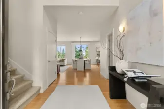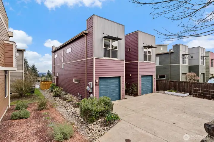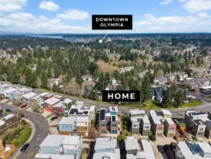 The Ultimate Eco-Luxury Retreat on Tumwater Hill! Experience the pinnacle of Tumwater Hill living at The Overlook. This architecturally distinctive Soho model sits on a rare rim lot, offering a 360° theater of the Pacific Northwest. Experience unmatched sustainability and significant energy savings with a premium 25-panel, 10kW solar system (producing ~10 MWh annually) designed to offset rising utility costs. Paired with a high-efficiency heat pump and a whole-house air purification system, this home ensures crisp summer AC and pristine indoor air quality year-round. Inside, expansive windows and vaulted ceilings are positioned to flood the home with natural light, highlighting the sleek bamboo flooring and open-concept layout. The gourmet kitchen features premium Café appliances, flowing effortlessly into open living spaces. Step outside to a secluded main-floor patio or ascend to the spectacular rooftop deck. This premier vantage point offers sweeping views of the Capitol dome, Puget Sound, the Olympic and Cascade Mountains, Mt. Rainier, and Mt. Baker. Entertaining is a breeze with an indoor wet bar and natural gas BBQ hookup. Adding to its rarity, this is the only home in the community with a true private driveway for expanded off-street parking. Perfectly located minutes from shopping and dining with easy access to I-5 and Hwy 101. Luxury, efficiency, and iconic views await.