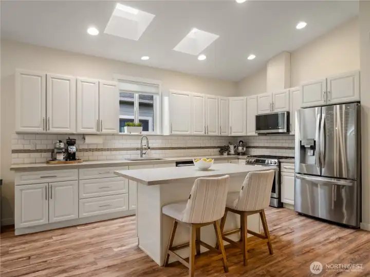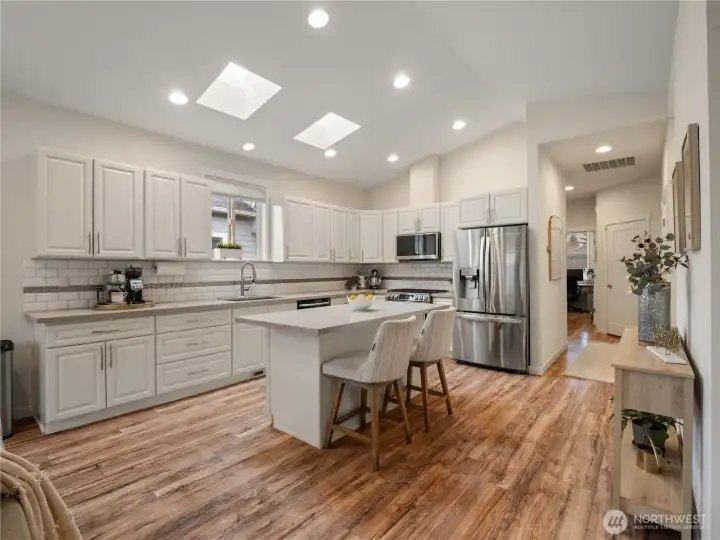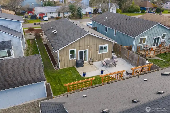 This beautiful home is exactly what you have been looking for! Built in 2016, this single-level 3 bed, 2 bath home features an open concept kitchen, living, and dining area with 14-ft ceilings and skylights over the kitchen island that fill the space with natural light. The kitchen includes quartz countertops, gas cooking, tile backsplash, and newer appliances. The spacious primary bedroom offers a full en-suite bath. Two additional bedrooms, a separate laundry room, full hall bath and ample storage add to the home’s functional layout. Step outside to an updated, private, fully fenced backyard with room to relax, garden, or enjoy outdoor living. Enjoy the two-car garage for parking or additional storage. This location has convenient access to downtown Tacoma, transit, and I-5. Don't miss this exceptionally cared for home.