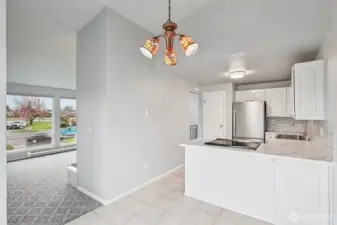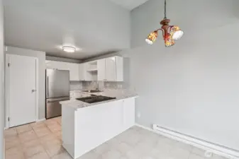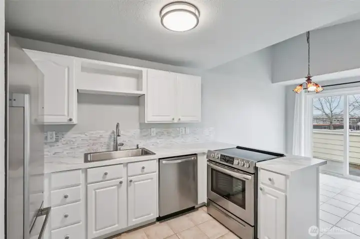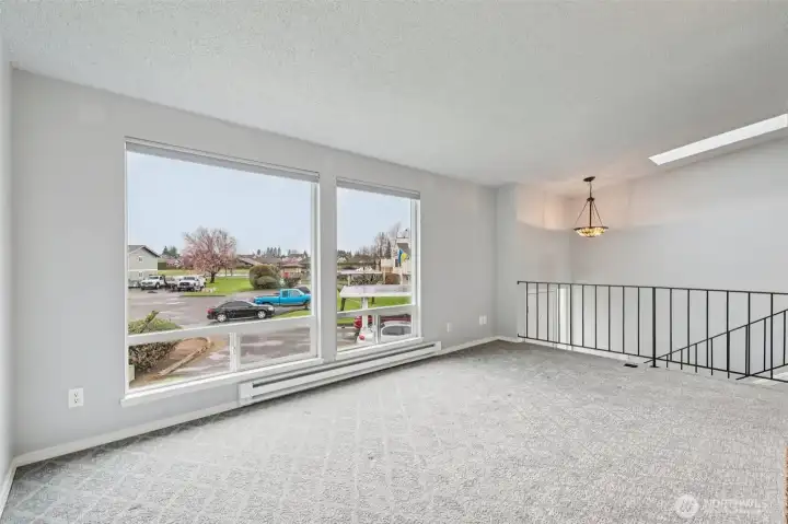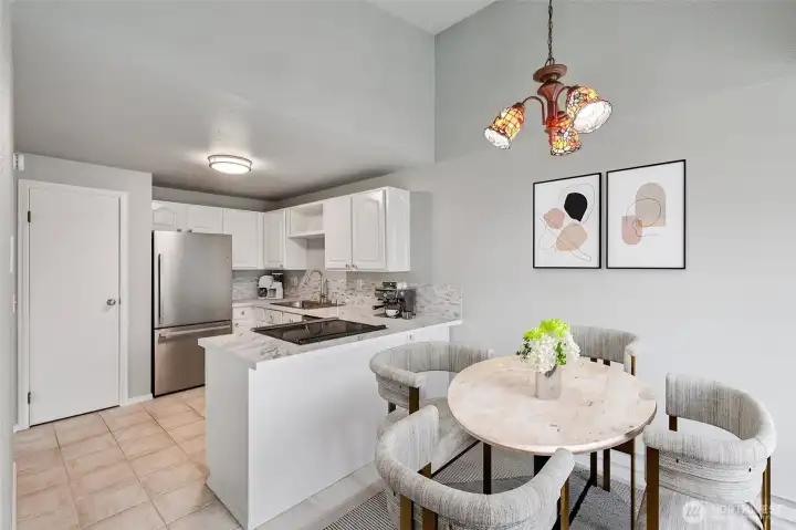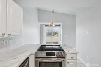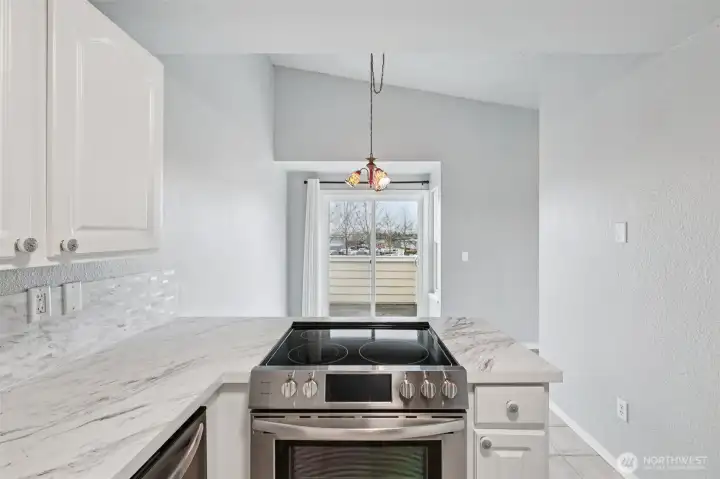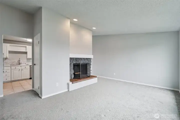 Lovely, updated top-level condo featuring a circular floor plan, abundant natural light from large picture windows, and a cozy fireplace—all perfectly positioned to take in gorgeous views of Mount Rainier. The kitchen is tastefully updated with plentiful cabinetry, stainless steel appliances, and beautiful quartz countertops. A formal dining area with a sliding door opens to a spacious balcony—ideal for relaxing or entertaining. The lower level offers a private primary bedroom with a full bathroom, along with a generous second bedroom perfect for guests, a home office, or flex space. Enumclaw location just minutes from downtown shops, restaurants, parks, and medical facilities.