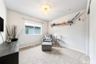 Welcome to EMERALD POINTE – the beautiful GATED Community of 33 acres - parks, trails & sport court! You'll find plenty of room to spread out in this stunning 2741 sq ft, 4 bed, 2.5 bath home. For peace of mind, you have a Brand-New Roof (2026), and new carpet (Oct 2025). With its large bonus room upstairs and private den on the main floor, you have the flexible space you need. Upscale touches like hardwood laminate flooring, 9' ceilings and Air Conditioning set this home apart. GORGEOUS kitchen with huge island, Quartz counters, upgraded appliances, and a large walk-in pantry makes it easy to create delicious meals. In your expansive Primary you'll find a 5 pc luxury bath & walk-in closet. The laundry room is also conveniently located upstairs. Enjoy the privacy afforded by backing up to a Green-Belt by relaxing year-round on your covered patio with a hot tub. Experience low maintenance living, since the HOA mows the front yard, which also has a sprinkler system. What a wonderful place to live!