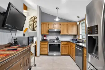 Well-maintained and thoughtfully cared for, this inviting home offers space, comfort, and everyday functionality in a desirable Oak Harbor neighborhood. The home features 3 bedrooms plus a versatile bonus room that can easily function as a 4th bedroom, office, or additional living space, along with a separate bonus living room area that provides extra flexibility for relaxing, entertaining, or gathering. Inside, a bright living and dining area with vaulted ceilings and large windows fills the home with natural light, creating a warm and welcoming atmosphere. The kitchen has been updated with stainless steel appliances, a modern tile backsplash, and generous counter space, making it a practical and enjoyable space for cooking and gathering. Multiple living areas throughout the home allow space for everyone to spread out comfortably, while the bedrooms are well sized and thoughtfully positioned within the functional layout. Step outside to a fully fenced backyard designed for enjoying the Pacific Northwest lifestyle, featuring a patio, a charming pergola seating area, raised garden beds, blueberry bushes, and a storage shed. The spacious yard offers plenty of room for gardening, play, or creating your own outdoor retreat. A two-car garage and ample driveway parking add convenience, and the location offers easy access to schools, shopping, parks, and is just minutes from NAS Whidbey.