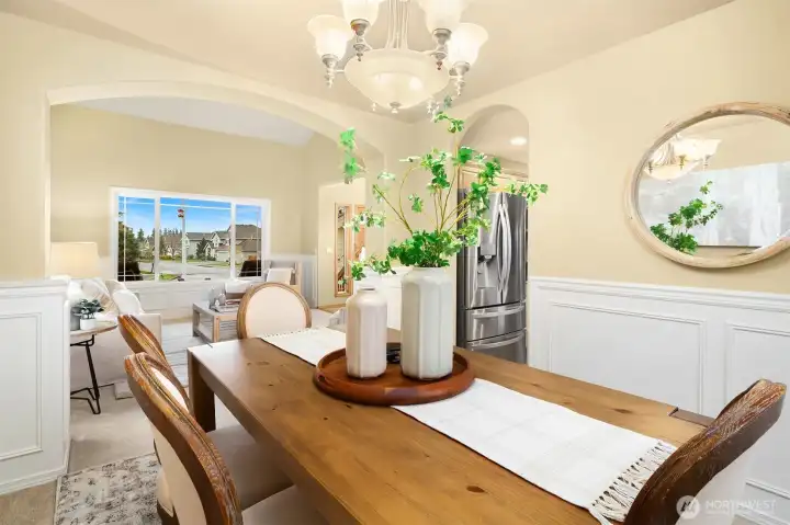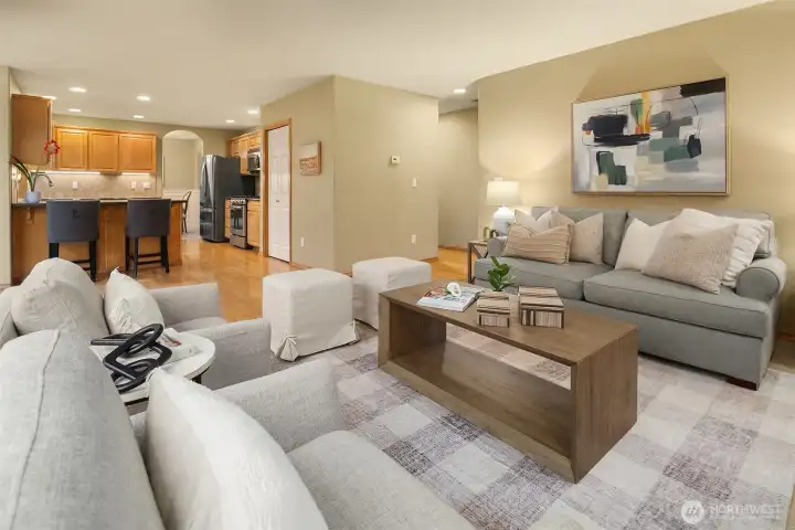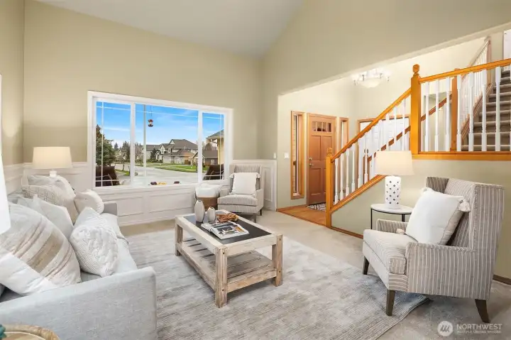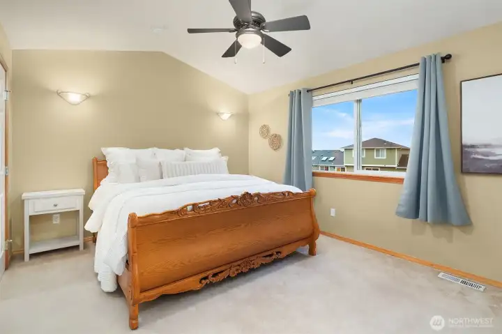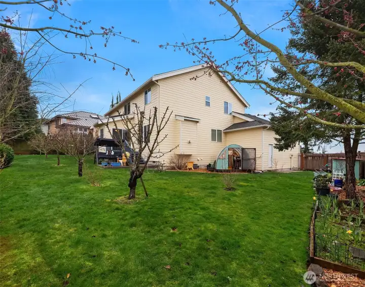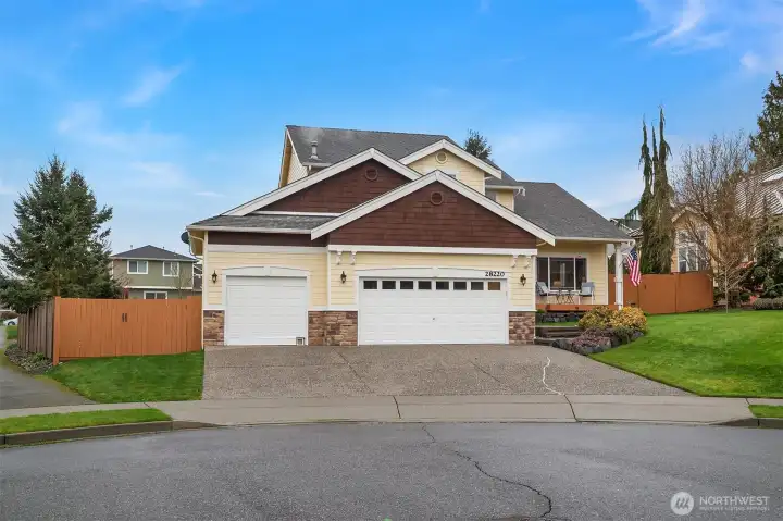 Welcome to this inviting home in Stanwood's sought-after Nordic Landing community. Thoughtfully designed with a functional layout and lots of natural light, the main level offers multiple living spaces and a first floor bedroom - perfect for guests or a home office. The open kitchen flows seamlessly into the dining and living areas, creating a comfortable open setting for everyday living and entertaining. Upstairs, the spacious primary suite provides a relaxing escape, while the additional three rooms offer plenty of space for everyone. Thoughtful upgrades throughout the home include a whole-house water filtration system and exceptional storage solutions. The oversized three car garage is a standout feature, complete with dedicated workbench areas, custom shelving, and a massive attic loft providing an impressive amount of additional storage space. Outside, the beautifully maintained garden is truly special, featuring mature fruit trees including cherry, pear, apple and plum, along with grapes and blueberry bushes. Seasonal blooms from lilacs, hydrangeas, lavender, and roses create a vibrant and peaceful outdoor setting to enjoy throughout the year. Located in a quiet neighborhood with convenient access to schools, shopping, and commuting routes, this home offers a wonderful balance of comfort, functionality, and outdoor charm.