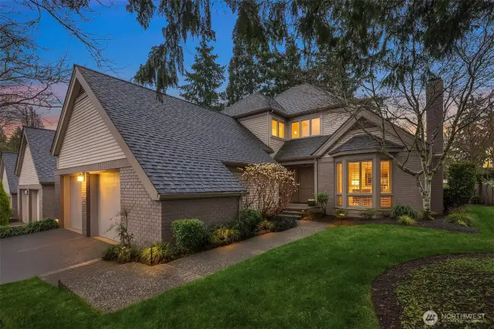 Welcome to Devonshire, a serene, gated community just minutes from downtown Bellevue. This beautifully maintained home offers the perfect blend of comfort, convenience, and timeless appeal. Inside, a bright and inviting floor plan features vaulted ceilings, expansive windows, and two cozy fireplaces that create warm, elegant living spaces. The main level flows effortlessly from the living and dining areas to the well-appointed kitchen, ideal for both everyday living and entertaining. A dedicated office on the main floor provides flexibility for working from home or hosting guests, while the laundry room adds everyday convenience. Upstairs, the spacious primary suite offers a peaceful retreat with a walk-in closet and ensuite bath with dual vanities. A second generously sized bedroom with a full bath completes the upper level. Enjoy your own private patio framed by lush landscaping, perfect for quiet mornings or outdoor dining. A generous two-car attached garage adds to the home’s functionality. All this in a secure, beautifully maintained community close to Bellevue’s premier shopping, dining, parks, and acclaimed schools.