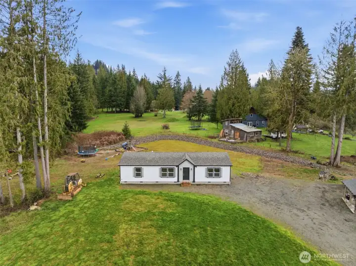 Great west Longview location, this homes sits on 6.3 acres of land. Home offers nice country setting with lots of room to enjoy. Home was placed in 2023, open floor plan with 3 bedrooms, 2 bath, separate utility, large pantry, eating island plus dining area. Room to build a shop, has an outbuilding for storage, 400 amp electrical service, partially fence yard & plenty of area to play. Outbuilding offers washer/dryer hook-up & full RV hook-up as well. Move in ready.