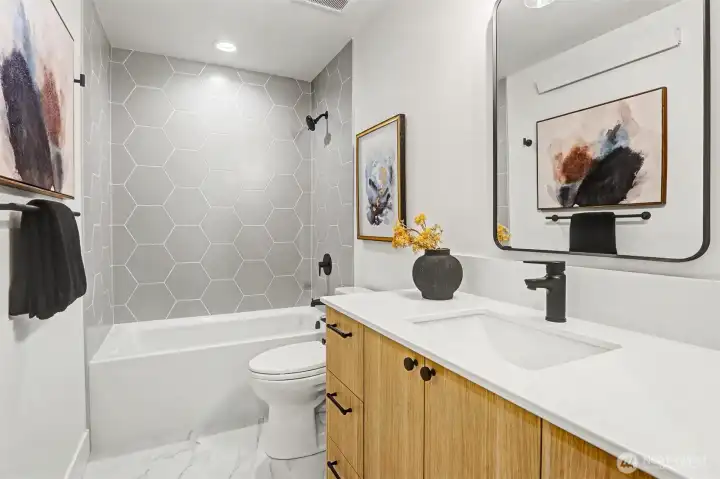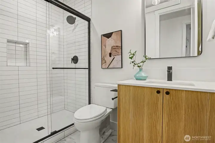 Discover contemporary Northwest elegance & timeless luxury in this stunning new construction home by NW Contour! The main level features a gourmet kitchen w/quartz island, Bellmont cabinets, & premium appliances. Enjoy a formal dining room, living room w/fireplace, & easy access to private patio. A convenient bedroom off the LDK with a 3/4 bath completes the main floor. Second level presents 3 bedrooms, 2 baths, & large laundry room. Spacious primary offers a spa-like ensuite bathroom w/oversized shower, & walk-in closet. EV-ready garage.
