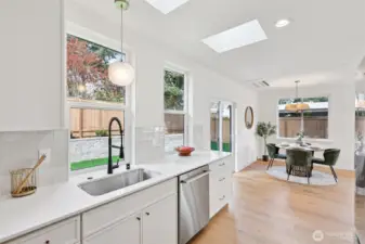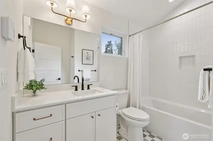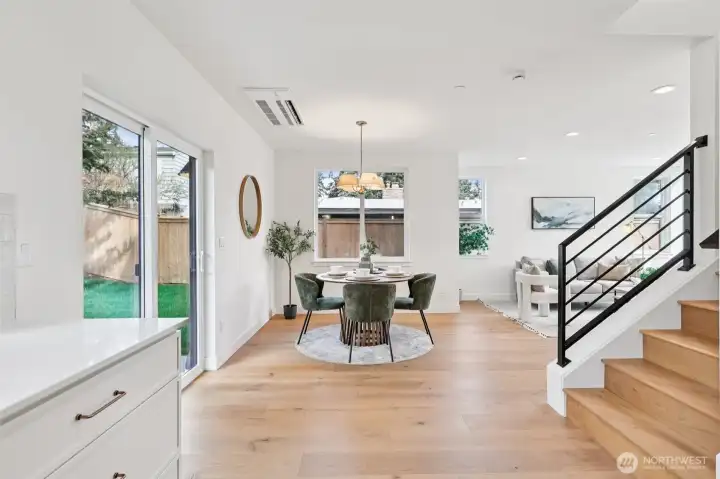 This new construction stand-alone home, in a prime Shoreline neighborhood, is thoughtfully designed blending modern style with everyday 3bed/2.5bath comfort! You will love the light-filled open main level with high ceilings, designer lighting and stunning fixtures. Beautiful tilework, quartz surfaces, and carefully curated finishes create a polished, contemporary feel. Spacious kitchen with sleek appliances and cabinets flow seamlessly to dining and living areas, ideal for entertaining. Upstairs, the generous primary suite with vaulted ceilings offers a spa-inspired bath and walk-in closet. Two additional bedrooms and a second full bath provide flexibility for guests, office, or hobbies. Heat pump and air conditioning! The attached one-car garage is heated and insulated with an incredible floor surfacing you could use this space for project, indoor play, your car park, storage or other unique opportunities. Enjoy a private fully fenced back yard. Located in a quiet, walkable community close to parks, shops, dining, and highly regarded Shoreline schools. Enjoy the best of coastal living just minutes from Richmond Beach. All this plus a builder's 2-10 warranty. Welcome home.