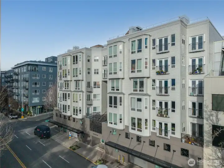 Discover refined city living in the heart of vibrant Belltown. This 1-bed/1-bath corner unit offers secure parking & a rooftop deck with sweeping views of Elliott Bay & the Olympic Mountains. Just steps from Sculpture Park, beaches & evening concerts with an easy walk to The Waterfront, Ferris Wheel, Aquarium, Pike Place Mkt, Space Needle, Seattle Center, Climate Pledge, Amazon campus, & Queen Anne. The beautifully updated interior features LVP floors, quartz countertops, S/S appliances, gas fireplace, in-unit washer/dryer, and floor-to-ceiling windows with remote control blinds. Spacious bedroom with walk-in closet, dining area, & den/nook. Building includes gym & sauna. 2 pets allowed per unit. No rental cap or assessments.