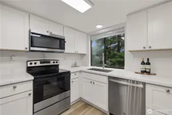Tri-level home in the peaceful Victoria Hills neighborhood, set on a spacious lot with a lush backyard backing to a greenbelt. Recently renovated with tasteful designer finishes. Enjoy year-round comfort with brand-new central A/C and new appliances. The light-filled, open layout features vaulted ceilings and skylights that create an airy, welcoming feel throughout. Step outside to multi-level composite decks overlooking a serene backyard with a natural stream—an ideal setting for summer barbecues, morning coffee, or quiet evenings outdoors. The cedar shake roof has been recently treated and remains in great condition. Located on a well-maintained street near parks, shopping, and everyday conveniences, with easy access to I-405 and a short commute to Boeing, vibrant downtown Renton and central to the Eastside, SeaTac and Seattle. A wonderful opportunity as a starter home or smart investment.