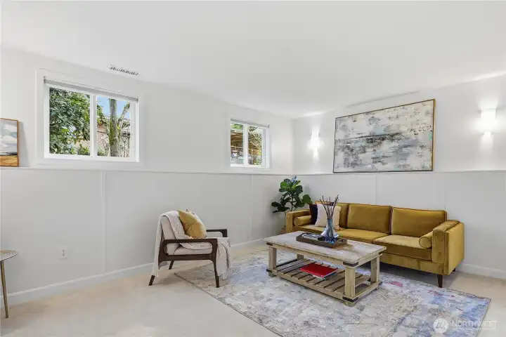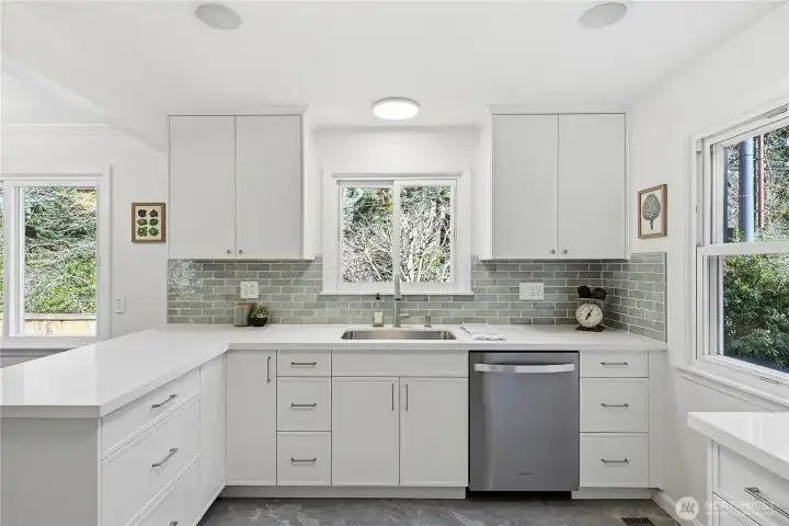 TONS of extras in this beautifully updated turnkey home in Boulevard Park. Set on a spacious lot across from Glen Acres Golf Club, this setting is surrounded by greenery yet connected to all the amenities of White Center, Georgetown & Burien. Optimized for modern livability w/ a newly remodeled kitchen, fresh paint inside & out, new roof & gutters, updated PEX plumbing, earthquake retrofitting, new carpet & a 25-speaker Bluetooth audio system that plays throughout. The highly functional layout with fantastic natural light flows seamlessly from the spacious living room & open dining room into the kitchen, complete w/ updated appliances & all-new cabinets, counters, flooring & tile backsplash. 3 beds up & a versatile family room downstairs that could also work great as an office, gym, play area or guest space, boasting an additional storage/laundry room. Efficient heat pump & upgraded air handling provide A/C & year-round comfort w/ triple-pane windows. Impressive amounts of room to roam outside: the fully fenced yard boasts a sun-soaked patio, raised garden beds & abundant space for pets or play. The driveway accommodates up to 4 vehicles (or RV) & there's tons of room for your gear & hobbies between the powered backyard shed, loads of built-ins & ~66 sq ft closet not counted in sq footage. There's so much to enjoy about this under-the-radar neighborhood - parks, dining & more all mins away - yet commuting any direction is also easy thanks to nearby freeways & bus lines.