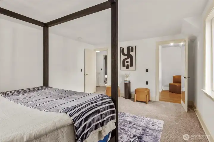 Welcome to this spacious and thoughtfully updated three-bedroom home in Northgate. Recent improvements include all-new Milgard windows that fill the home with natural light, fresh carpet on the lower level, and new flooring in the kitchen for a clean, modern feel. Generous living spaces provide comfort and flexibility for everyday living or entertaining. A beautifully remodeled bathroom offers a spa-inspired retreat featuring a walk-in shower and elegant freestanding soaking tub. Upstairs unwind in the light filled primary suite that features an oversized walk in closet. The basement is ready for the buyer's imagination and provides plenty of room for storage. Step outside to enjoy the spacious fully fenced yard and back deckâperfect for relaxing, gardening, or summer gatherings. Parking is easy with an attached garage plus two dedicated spaces. Ideally located near shopping, dining, parks, and transit, this home combines modern updates with everyday convenience.