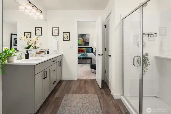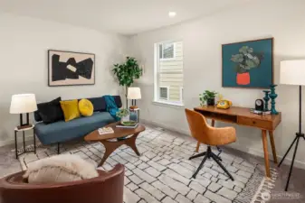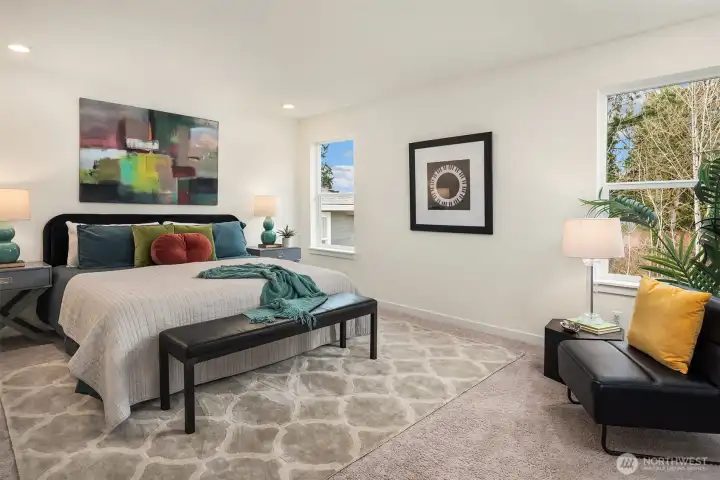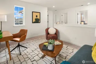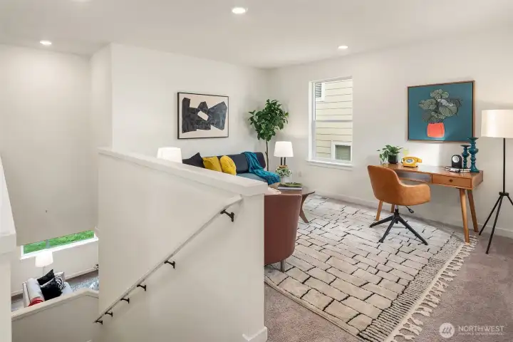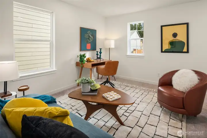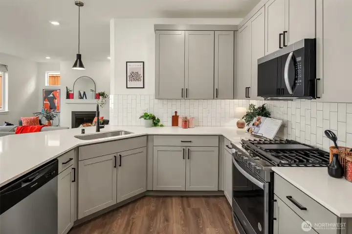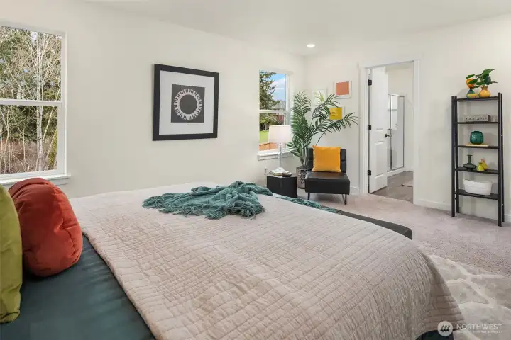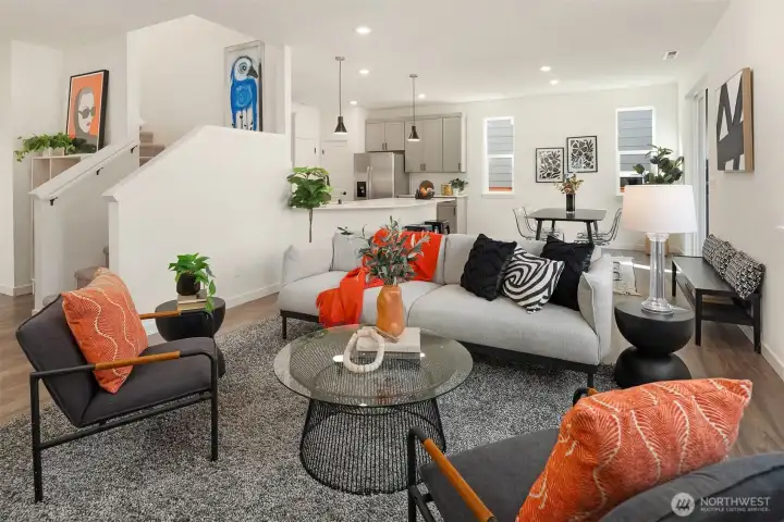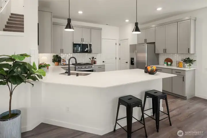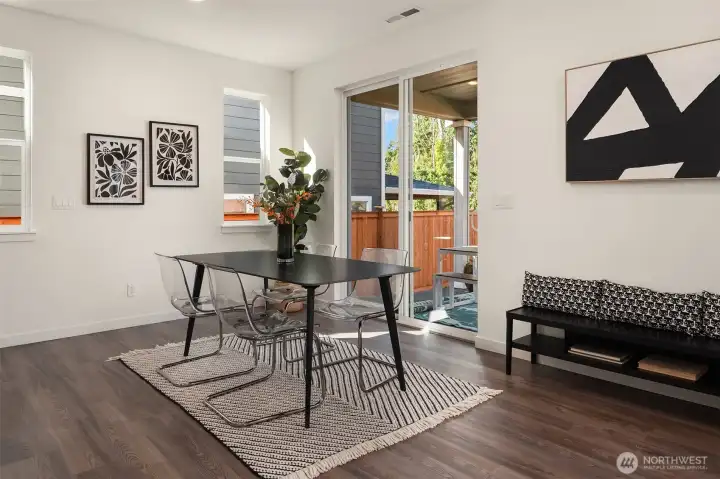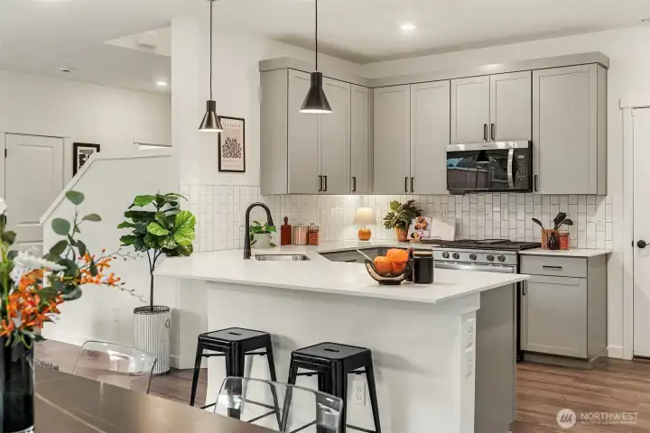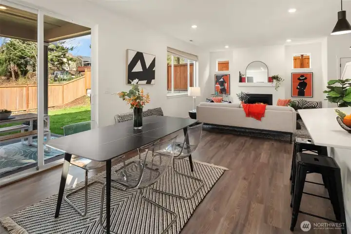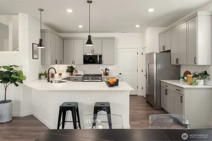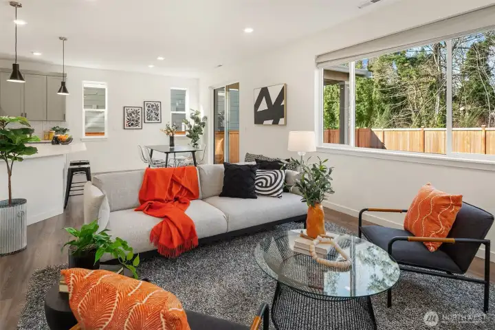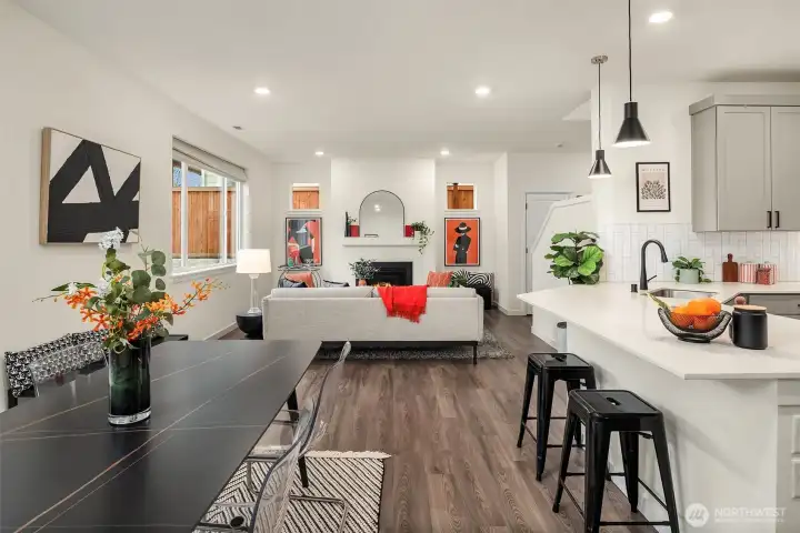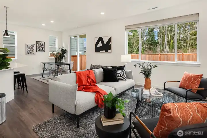 Beautifully maintained home in Lumar Ridge! Built in 2023, this modern home offers bright open spaces, fluffed and ready for you to move right in. No fussing needed. The easy flow of this floor plan removes any entertaining challenges. The flow from the living room into the dining room makes dinner parties a breeze. And now that spring and summer are on the way, throw open the dining room sliding doors and enjoy those indoor/outdoor events. The covered patio is fabulous for BBQing, while the large level lawn beyond is the perfect spot for a rousing game of bocce ball. You will love cooking in this kitchen. Not only is it chock full of stylish Shaker-style kitchen cabinets for all your cooking accoutrements, but also the lustrous quartz counters provide plenty of room for prepping and serving. Stroll upstairs and you will find three spacious bedrooms, including a primary suite complete with its own bath and walk-in closet. (Your shoe collection will be very happy!) Besides the three bedrooms and two baths, there is also an open den area. Use this for an office, a media room, or a crafting space. And wait, there is more. There is also a two-car garage as well, where there is room enough to stash your kayaks, camping gear, or bikes. Add an electric car charger and AC to the list, and you have a home that is a 10 out of 10. Here in Lumar Ridge you are close to it all: Lake Fenwick Park, hiking trails, dining, shopping, and schools!