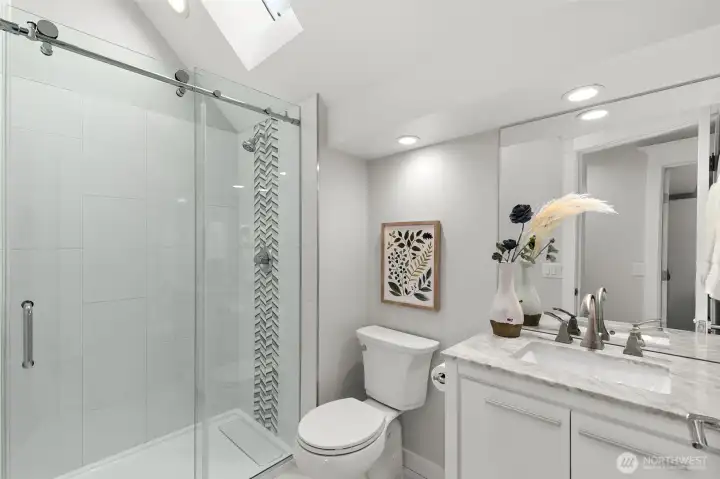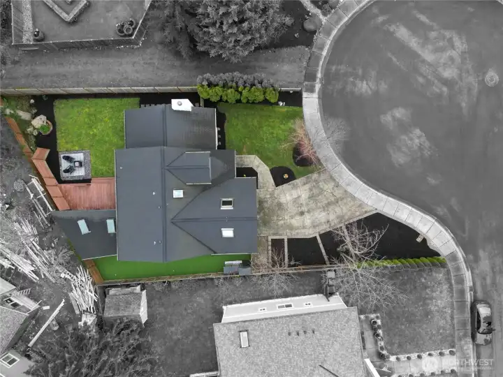 This immaculate 4-bedroom home offers stylish top-to-bottom updates, generous living spaces, and exceptional indoor-outdoor living at the end of a private cul-de-sac. The main level welcomes you with soaring ceilings, abundant natural light, and a dramatic fireplace anchoring the spacious living room, while the open dining area and expansive kitchen create an easy flow for entertaining. The kitchen features extensive cabinetry, quartz counters, and plenty of prep space. The flexible floor plan includes a rare first-floor bedroom and bath, ideal for guests, office space, or multigenerational living, plus three additional bedrooms upstairs, including a spacious primary suite with A/C. Outside, the fully fenced backyard is designed for year-round enjoyment with a large covered deck with heaters, perfect for dining, lounging, and entertaining, plus a fire pit area, lawn space, and even a putting green to practice your golf game. The fully finished garage offers excellent storage, workspace potential, and even includes climate control (A/C included)! With standout updates, flexible living space, and an impressive backyard, this home is truly move-in ready. No HOA.