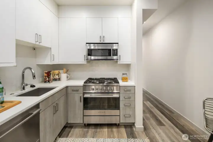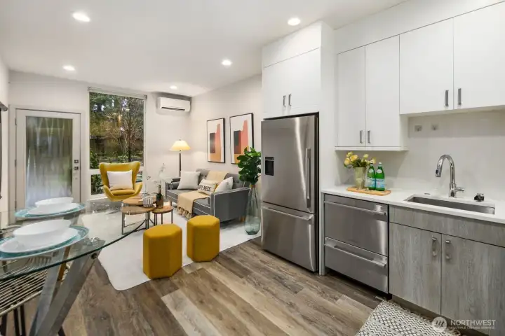 Built in 2020, this modern 2-bedroom, 2-bath townhouse in desired Wedgwood neighborhood offers stylish design and everyday convenience. Located in an area known for its strong schools, the home is also within walking distance to local shops, restaurants, and neighborhood amenities. Inside, you’ll find thoughtfully upgraded finishes, including custom iron railings, quartz countertops with tiled backsplashes, stainless steel appliances, and high-end designer cabinetry. A blend of hardwood, carpet and tile flooring adds both durability and elegance throughout. The open-concept layout is filled with natural light, creating a bright and inviting atmosphere. The two spacious bedrooms are thoughtfully positioned on separate levels, offering added privacy and flexibility for guests, roommates, or a home office setup. Enjoy year-round comfort with a ductless mini-split heating and air conditioning system. Step outside to your private rooftop terrace with a gas hookup—perfect for entertaining or relaxing. Fresh paint, no HOA, and great wedgewood schools! this exceptional opportunity. Ideally situated near bus lines and just minutes from the University of Washington, Seattle Children’s Hospital, and downtown Seattle, this home offers a truly convenient and connected lifestyle—perfect for enjoying chic city living. A must to see!