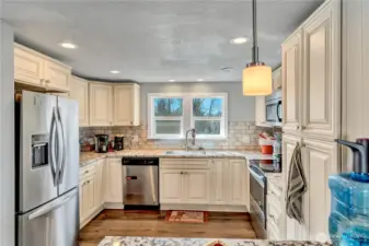 Welcome to this stunning three-level home offering 5 bedrooms and 3.5 bathrooms on a 14,469 sq ft sloped lot! The main floor features a bedroom with a full bath, perfect for guests or a home office. Upstairs, two bedrooms enjoy vaulted ceilings, with one room carpeted and the other featuring laminated flooring. The lower level is home to the spacious primary suite, complete with a newly updated ensuite bathroom boasting double sinks, a walk-in shower, and a soaking tub, plus wall-to-wall carpeting and a private exterior entry to the patio. The kitchen is expansive, with beautiful wood cabinetry and plenty of storage, making it perfect for cooking and entertaining. With multiple living spaces across three levels, this home provides a versatile layout for entertaining, while the large sloped lot offers privacy and outdoor potential. A perfect combination of comfort, style, and functionality in a desirable location.