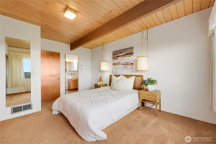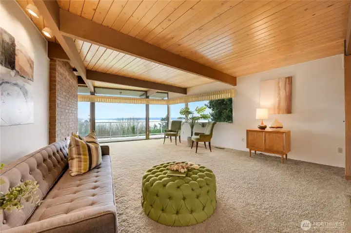 Set along coveted Shorecrest Drive overlooking Puget Sound, this iconic 1958 Pacific Northwest modern captures sweeping water & mountain vistas, including breathtaking sunsets. Thoughtfully preserved for nearly seven decades, the home maintains its original architectural integrity while radiating the timeless elegance & sophistication of Northwest design. Sits on expansive 17,000+ sq ft lot, the residence welcomes you through a dramatic entry into open, light-filled living spaces. The living & dining rooms feature a dual fireplace & expansive views, flowing seamlessly to a deck that stretches the full length of the home—perfect for entertaining or serene living. Skylights illuminate the bright, airy kitchen & adjoining utility room, while the primary suite provides a tranquil retreat, 3 additional bedrooms & a full bath complete the main level. The lower level offers exceptional versatility, with soaring ceilings, two expansive entertainment areas anchored by a fireplace, 700 sq ft of storage, a full bathroom, & direct access to the patio—ideal for indoor-outdoor living & gatherings. A spacious 2-car garage completes the property, while a voluntary community club with private neighborhood beach access enhances the lifestyle possibilities. Visit the Shorewood on the Sound Community Club website. This is a rare opportunity to own a piece of Pacific Northwest architectural heritage while creating your own legacy in one of the region’s most inspiring settings.
