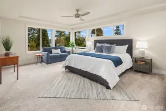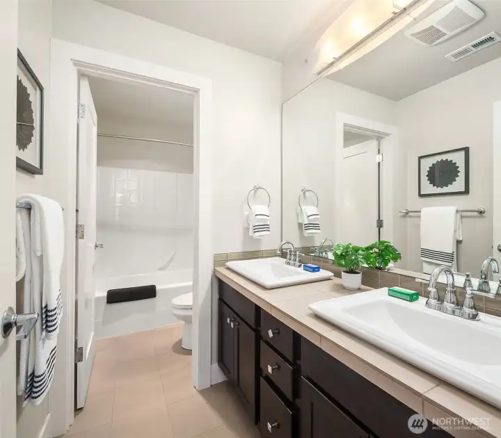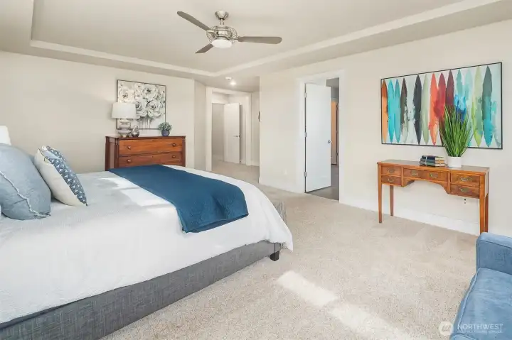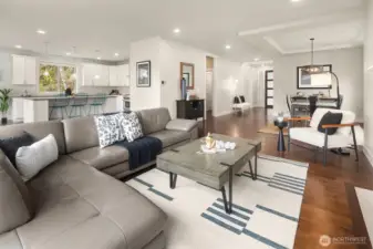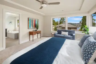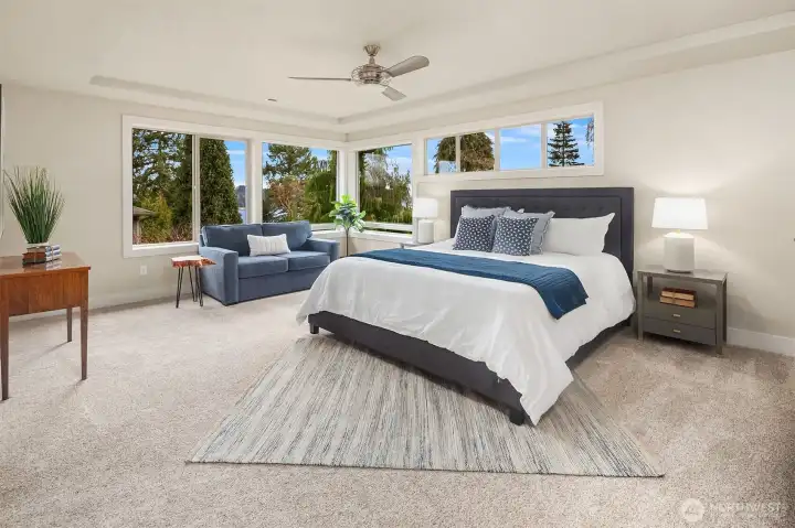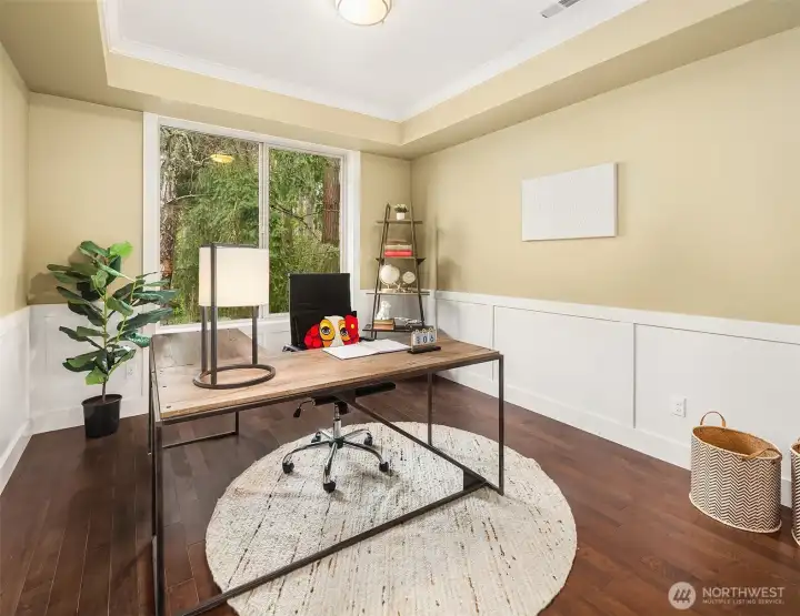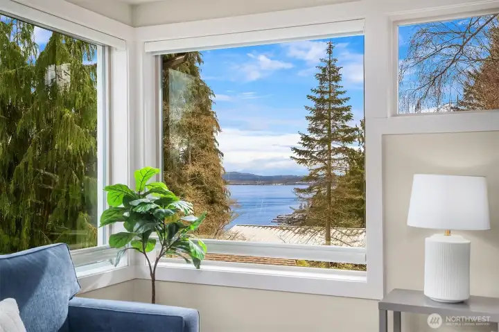 Welcome to a home that blends comfort, beauty, and thoughtful design. Step up to the front door and into a home that immediately welcomes you with warmth and light. Just inside, the formal dining room sits ready for memorable dinners, while the inviting living room with its cozy fireplace draws you in to relax and unwind. The space flows naturally into the heart of the home—a bright kitchen with a central island, perfect for gathering, cooking, and conversation. From here, step out onto the deck off the kitchen, an ideal place for morning coffee or summer evenings overlooking the fully fenced backyard. Tucked thoughtfully on the main floor are a private office and convenient half bath, creating the perfect balance of comfort and functionality. Upstairs, four spacious bedrooms, two full bathrooms, and a utility room provide room for everyone. The primary suite offers its own peaceful en suite bath, while a perimeter bedroom captures beautiful views of the lake and Mount Rainier. A convenient two-car garage and two off-street parking spaces complete this home designed for everyday living and unforgettable moments. Welcome to your urban Oasis!