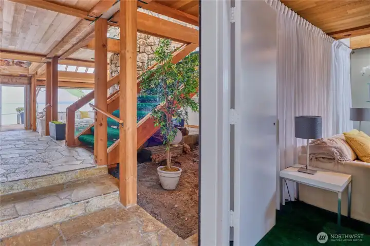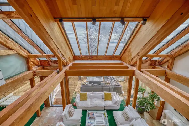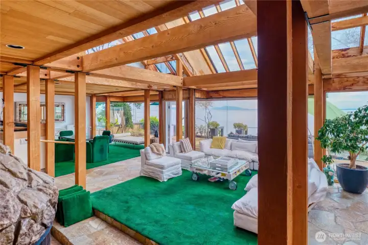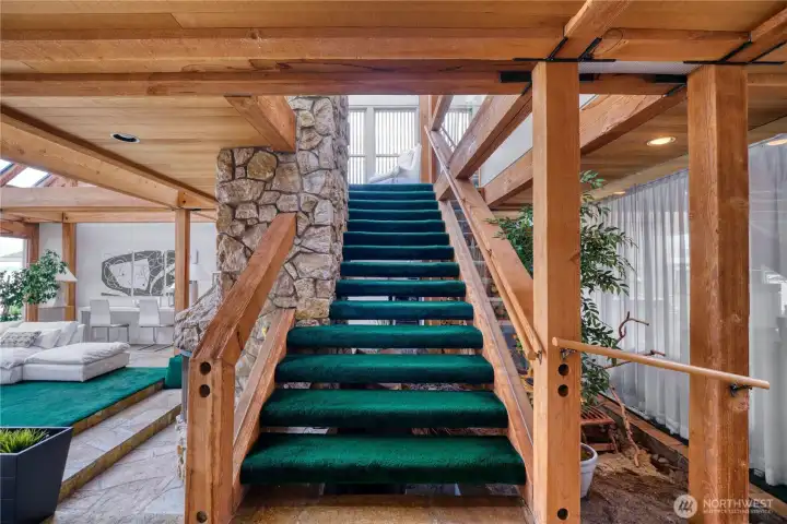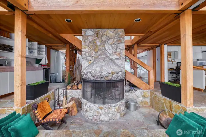 Sunken 2 story wood burning fireplace