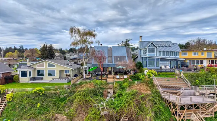 This is a stunning waterfront living and vacationing opportunity on the South Beach side in the unique seaside community of Point Roberts, in a wildlife sanctuary. Enjoy daily views of eagles and heron. Private access to the swimming beach with clean, hard, low tide sand flats. Family owned for over 6 decades with approximately 2730 square feet of thoughtfully designed living space designed by architect Mark Ankenman in 1982. The beach house showcases classic NW character with soaring vaulted ceilings and exposed striking cedar posts and beams. The 2 story high sunken stone fireplace is the heart of the space. There are also 2 new heat pumps for efficient year round comfort. This custom built home offers 3 bedrooms and 3 full bathrooms with a den/flex room on the main floor. The open living space is exceptionally bright with endless skylights and ocean facing wall to wall, floor to ceiling windows. The main floor provides full views of the ocean and the Gulf and San Juan Islands. Expansive cedar decks brings the living space outdoors and is ideal for entertaining, with front row seats to stunning views of nature. This home offers a rare balance of rustic beach house and elegance. This is an exceptional opportunity to own a legacy property just 45 minutes to Vancouver and one hour to Bellingham. The 5 square mile peninsula is very safe. We have a golf course, marina, airstrip, cafes, amenities, parks, medical clinic and a spectacular fire department.