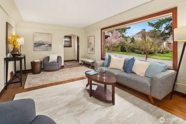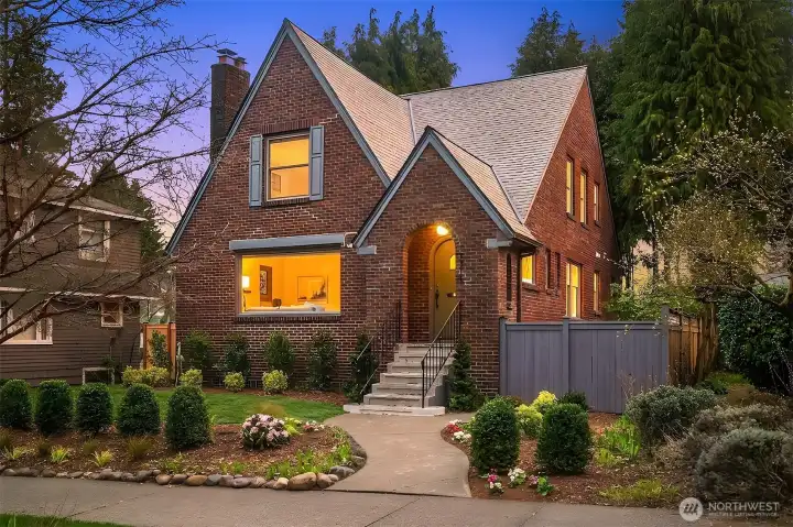 Beautifully remodeled classic Tudor in Seattle’s desirable Maple Leaf neighborhood. This light-filled home blends timeless character with thoughtful modern updates. Original woodwork and built-ins highlight the home’s historic charm, complemented by a stunning new kitchen and fully remodeled bathrooms featuring tile and natural stone. Recent upgrades include new plumbing and electrical, fresh interior paint, and hardwood floors throughout. The inviting living room features a fully operable brick fireplace and charming stained-glass windows. The well-designed layout includes two bedrooms on the main level and two upstairs, offering flexibility for a variety of living arrangements. The newly insulated and finished lower level adds valuable living space with a family room and office. Set on an oversized city lot, the fully fenced backyard has been professionally landscaped and offers a perfect outdoor setting for entertaining. The property also includes a garage and additional off-street parking pad. Ideally located near the University of Washington, Seattle Children’s Hospital, University Village, restaurants, and shopping, with easy access to light rail, bus lines, and I-5. A rare opportunity to own a beautifully updated Seattle Tudor in a prime location.