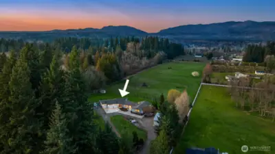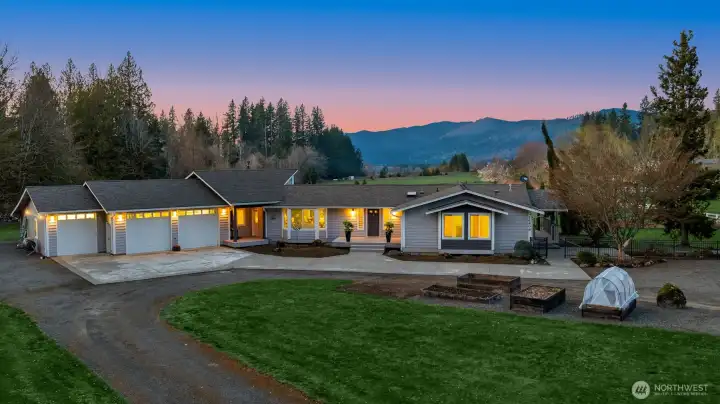 Custom-built 4-bedroom rambler, sited on a picturesque 9+ acres w/ unobstructed views of Tiger & Taylor Mountains! Colossal 40’x40’ pole barn/shop with plenty of parking and outbuildings for storage! Thoughtful open-plan layout illuminated w/ considerable natural light. Enhanced kitchen w/ solid wood cabinets, quartz countertops, tile backsplash, & stainless steel appliances. Upgrades include a heat pump, interior paint, natural wood floors, skylights, slate entry, & Trex decking. Bright living & family rooms w/ cozy propane + wood-burning fireplaces, a large dining area, and an intimate eating nook. Lavish master suite with a 5-piece en suite, walk-in closet & private deck! Spacious bedrooms with an oversized laundry/mud room leading to your private 8+ acres of flat pasture space to hobby farm, introduce horses, and livestock. Take in breathtaking sunset views of Tiger & Taylor Mountains or gaze at wildlife and the local elk herd that migrates through your new backyard! Explore subdividing the land into two separate lots with your feasibility team & King County Permitting to build another home or accessory dwelling unit. A tight-knit community within minutes to Issaquah/Maple Valley, athletic fields, Hobart Farms Nursery, & hiking/biking trails. Set in the Tahoma School District w/ quick access to HWY 18! Once-in-a-lifetime opportunity, first time on the market in 27 years!!