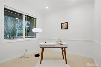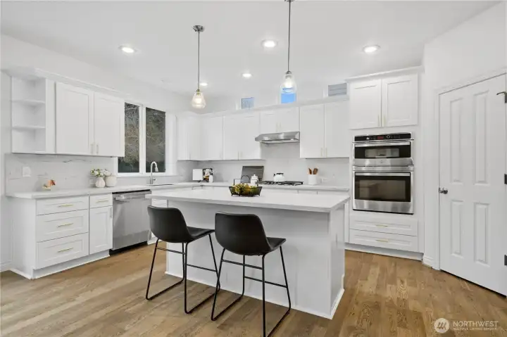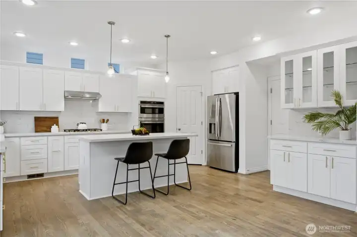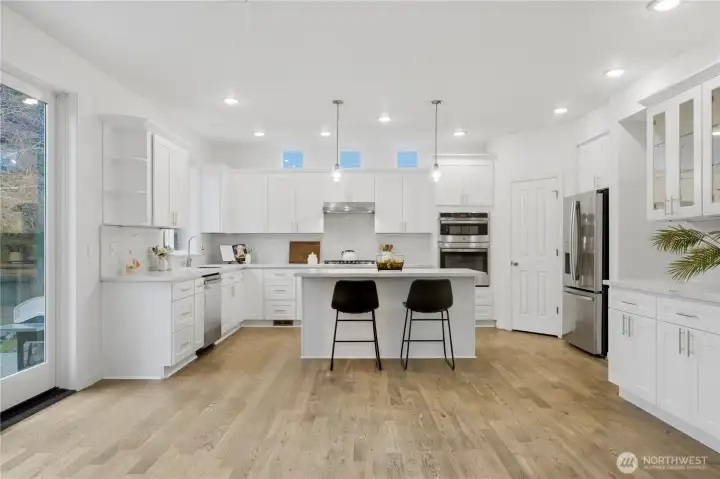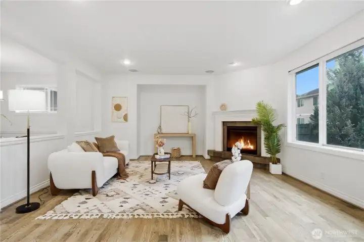 Welcome home to the highly desirable Laurelhurst neighborhood in Renton Highlands! Offering approximately 2,600 sqft, this spacious home features 4 bedrooms plus a private office, ideal for remote work or a quiet study space.Fiber high speed internet available. The open living and dining areas flow seamlessly into a beautifully updated kitchen featuring granite countertops, brand-new stainless steel appliances, a gas cooktop, walk-in pantry, and a stylish dry bar, perfect for everyday living and entertaining. Elegant French doors lead to a relaxing patio and a fully fenced, low-maintenance backyard with extensive hardscaping, creating an ideal outdoor space for gatherings and easy upkeep. Upstairs, the light filled primary suite offers a private sitting area, luxurious 5-piece bath, and a spacious walk-in closet. Recent updates include new carpet, a furnace, and water heater replaced in 2024, the house with central A/C, providing year-round comfort and peace of mind. Additional highlights include a dedicated laundry room and a 3-car garage with built-in cabinetry, perfect for storage or a workshop.Conveniently located with easy access to I-405, and just minutes from Boeing, Sea-Tac Airport, and abundant shopping and dining options. Must See~