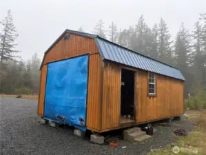Level 2.5 acres in the heart of the Toandos Peninsula. Established driveway & parking area with ample room for your RV's and recreation vehicles. Power on site with plug-ins for 110 and 30 amp service. Shared well with waterline easement recorded. Several tiny cabins and outbuildings on the property. One tiny cabin with power. Second unfinished tiny home with a new entry door and windows on site, power conduit from the meter base to the building. Two small storage buildings that can be easily converted for a variety of uses. The property has been surveyed and is partially fenced. Escape the city and relax by the fire on a starry night or escape from the weather under the cover of the gazebo.