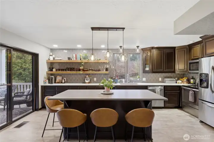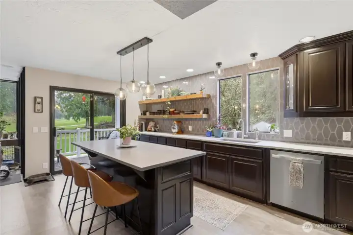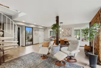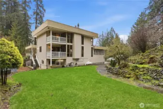 Welcome Home! This stunning 3 bed 3.25 bath contemporary home blends modern style with relaxed, comfortable living in a beautiful natural setting. The open living and dining area is bright and inviting, with large windows that fill the space with natural light—perfect for entertaining guests or enjoying a quiet evening at home. At the heart of the home is a spacious chef’s kitchen and a large island ideal for cooking, gathering, and everyday living. Just off the main living area, an oversized room with charming French doors offers incredible flexibility as a home office, playroom, media room, or additional lounge space. This home also features two fireplaces—a cozy propane fireplace in the living room and a wood-burning fireplace upstairs just off the primary bedroom—creating warm, inviting spaces throughout. The original spiral staircase adds a unique architectural touch and timeless character. The primary suite offers a private setting with a walk-in closet, bonus side room, and a spacious bathroom. Enjoy morning coffee or evening sunsets from one of the two balconies overlooking the scenic country club golf course with views of holes 12 and 13. With a large garage, ample driveway parking, and space for RVs and recreational toys, there’s room for everything. Surrounded by natural landscaping and tranquil water features, this home offers the perfect blend of style, comfort, and peaceful living. Opportunities like this are rare—don’t miss your chance to make it yours!