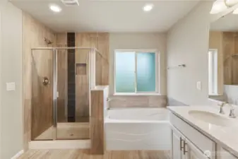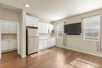 Tucked away on a quiet cul-de-sac and backing to a peaceful greenbelt, this beautifully updated home offers a rare blend of privacy, style, & opportunity. Imagine starting your mornings with coffee in a serene backyard surrounded by trees, then stepping inside to a home that feels spacious & welcoming. The main level greets you with soaring ceilings and an open staircase railing that fills the space with natural light. The heart of the home is the stunning kitchen—built for gathering—with a massive island, quartz countertops, stainless steel appliances, double oven, and a huge walk-in pantry. The kitchen flows into the dining and living areas where a cozy gas fireplace anchors the room, creating the perfect space for everyday living or hosting friends. Upstairs offers room for everyone with a bonus living space, two oversized bedrooms, a private office/den, and convenient laundry room. The luxurious primary suite feels like a retreat, featuring a spa-inspired bathroom and an expansive California walk-in closet. One of the home’s most exciting features is the fully integrated additional dwelling unit with both private exterior and interior access. Complete with a living room, bedroom, ¾ bath, kitchen, and its own washer and dryer, it’s ideal for rental income, guests, or multigenerational living. Beautiful LVP flooring, quartz finishes, and a private backyard with a gazebo overlooking the greenbelt complete this flexible and inviting home. Don't DREAM it - OWN it!