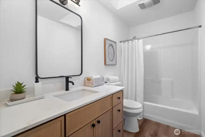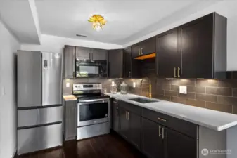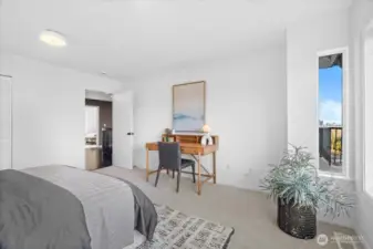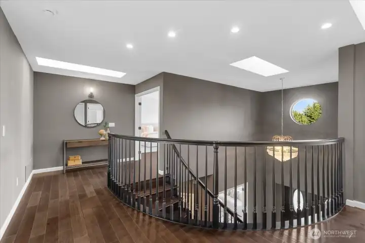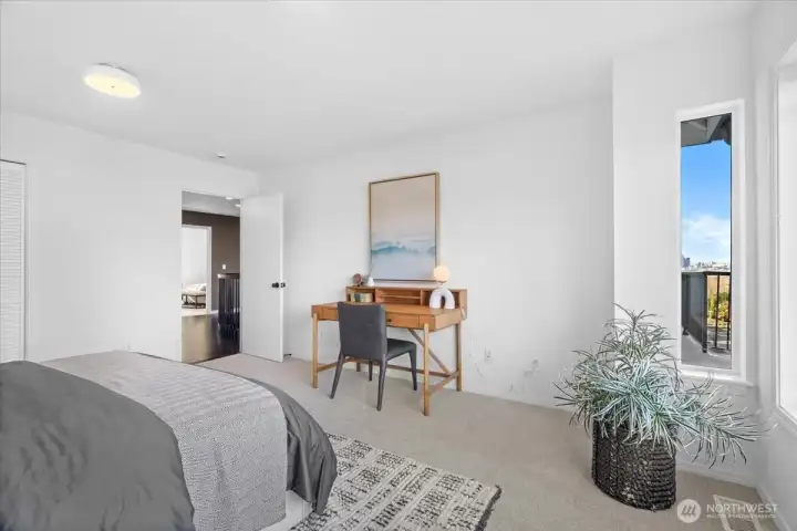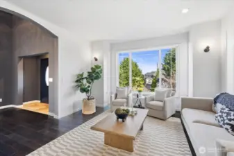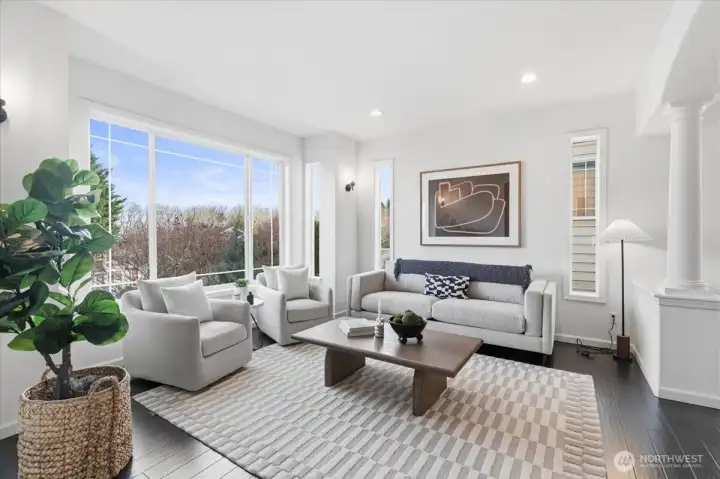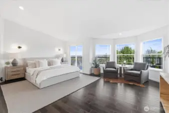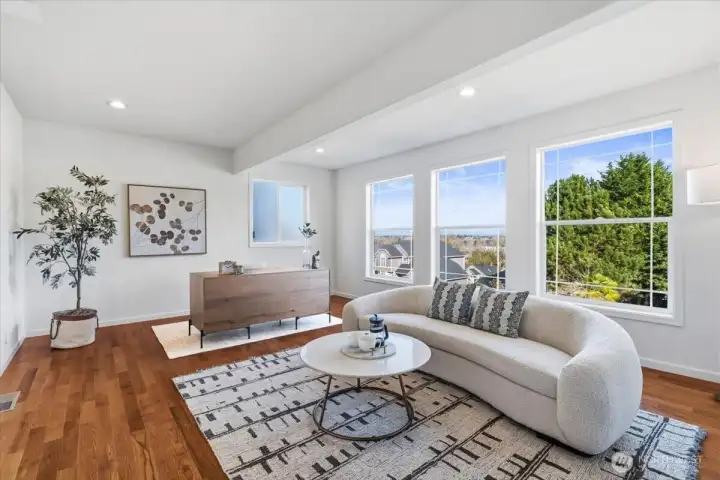 Welcome to this stunning home tucked into a quiet dead-end street in a hidden pocket of West Seattle. A grand staircase and formal living and dining rooms create an elegant first impression. The main floor also features a spacious office or guest bedroom for flexible living. The newly remodeled kitchen is expansive and inviting, with a breakfast island, dual pantries, garden window and abundant storage. It opens to a warm great room with dining space, a cozy media area with gas fireplace, and built-in nooks for art and display. Step outside to a backyard oasis with entertaining decks, a flagstone patio and terraced garden spaces. Upstairs, the impressive primary suite offers a private balcony, sitting area and spa-like five-piece bath with a generous walk-in closet. Three additional bedrooms are spacious and bright. The lower level includes a separate entrance, full kitchen and bath—ideal for an ADU or multi-generational living. Additional highlights include a large two-car garage with EV charger (and wiring for a second), professional landscaping with irrigation and lighting, air conditioning, and fresh carpet and paint. Peaceful setting with convenient access for an easy commute.