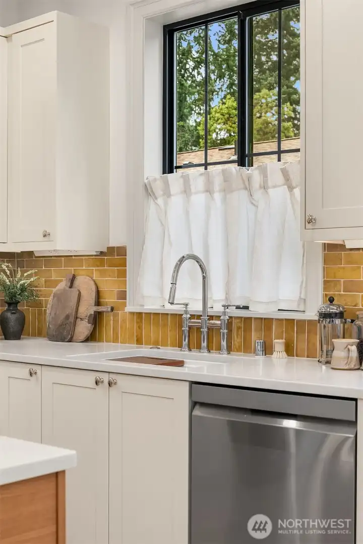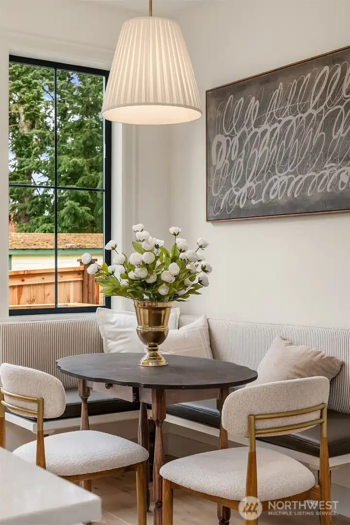 Artisan luxury defines this 2-bed + den Edmonds new-construction built by local Westerly. Old-world charm woven throughout. Open floor plan w/ arch that gently defines living area from kitchen & dining. Statement kitchen w/ ochre Zellige tile backsplash, prep island, SS appliances, quality Bellmont cabinetry, & huge walk-in pantry. Designer touches from living hardware that develops patina over time to upscale lighting. Inviting dining space w/ custom built-in banquette: furniture-style details & French ticking cushions. Upstairs the primary suite & 2nd bed feature vaulted ceilings. Primary bath & hallway bath blends vintage details w/ new. Roomy den/office could double as nursery. Built-in bookcase w/ hidden water heater. Oversized windows & wide-plank oak hardwoods. Golden Age design meets modern livability w/ too many features to list: mini-split heat pumps, mudroom nook, iron-detailed staircase, fully-fenced turf backyard w/ Trex deck, heated 1-car garage w/ space for gym & storage.