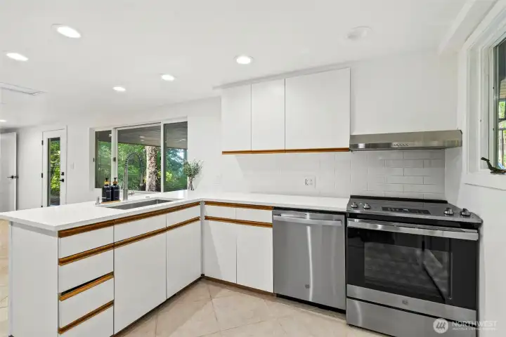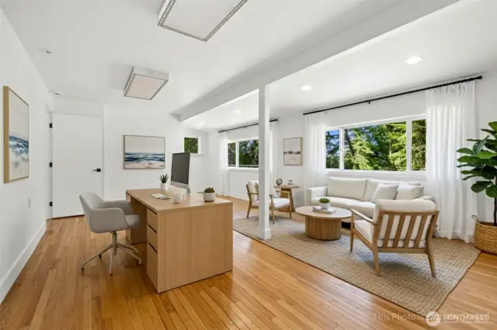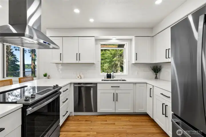 This updated 3,923± sqft home in a private Cooper Point neighborhood offers a rare combination of space, style, and function. Enjoy water views of Eld Inlet from this fully updated home featuring 3 spacious bedrooms, a bonus room, and a den—ideal for work or relaxation. Updates include new appliances and countertops, Italian marble and travertine tile in the bathrooms, and refinished wood floors. The expansive multi-level deck provides great outdoor living space and a peaceful setting. With a new roof and HVAC system, the home is move-in ready. Ideal for multi-generational living or potential rental income, the fully separate lower level includes a private kitchen, laundry, bathroom, and bedrooms. A unique opportunity!