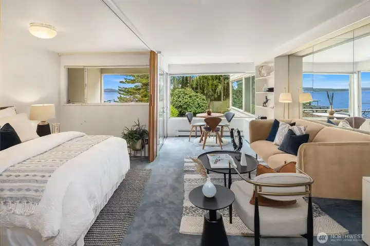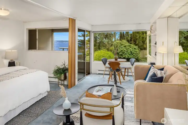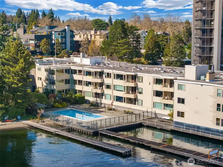 LAKE living in this view condo in Madison Park captures the effortlessly cool, true mid-century modern waterfront vibe-where simplicity, light and an idyllic setting do all the work. Lakeview Lanai sits right on the water with a rare, almost retro-resort feel—complete with a dock, outdoor pool and direct lake access—giving it that laid back, Palm Springs meets Seattle energy. Southern facing unit with gorgeous light, views and private patio—perfect for sipping coffee and watching the boats go by. Original tile in the kitchen and bathroom bring authentic mid-century character. Steps to the beach, cafes, dining and darling shops that make Madison Park so iconic. Quick commute to downtown or the Eastside. Large private storage for unit AND community storage for bikes and water toys.