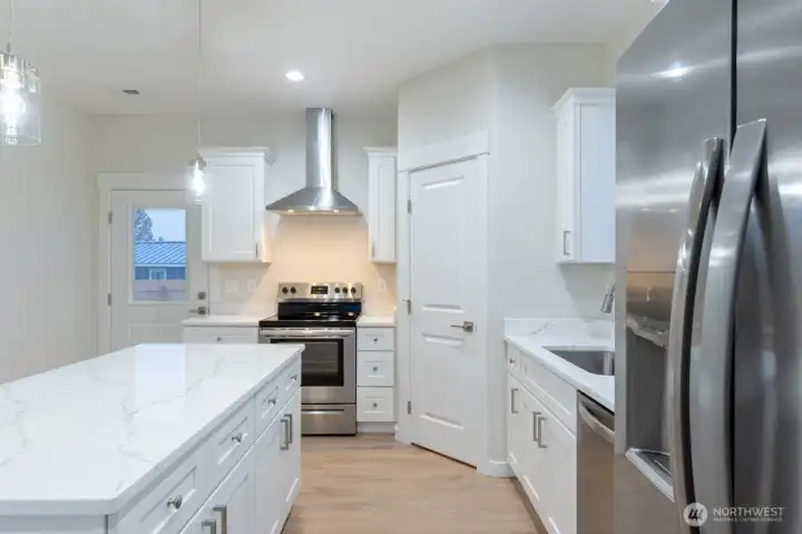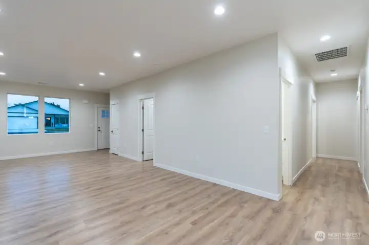 Step into this beautifully crafted new construction home offering 3 bedrooms, 2 bathrooms, and 1,342 sq ft of thoughtful design and modern comfort. The bright, open layout features white cabinetry with sleek black hardware, stainless steel appliances, and granite countertops that elevate the kitchen with timeless style. Durable laminate flooring runs throughout the entire home, creating a seamless, low-maintenance living experience. Each bedroom includes built-in closet organizers, maximizing storage and keeping everything effortlessly tidy. Enjoy outdoor living on the spacious 10×16 patio, perfect for relaxing or entertaining. A 2-car garage adds convenience and extra storage. Move-in ready with quality finishes throughout—this home blends style, function, and brand-new peace of mind.