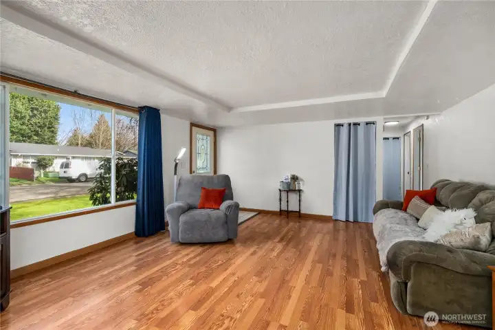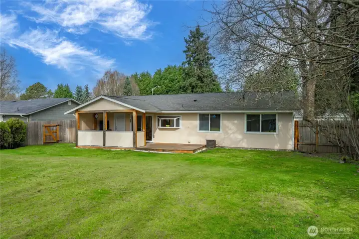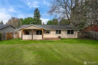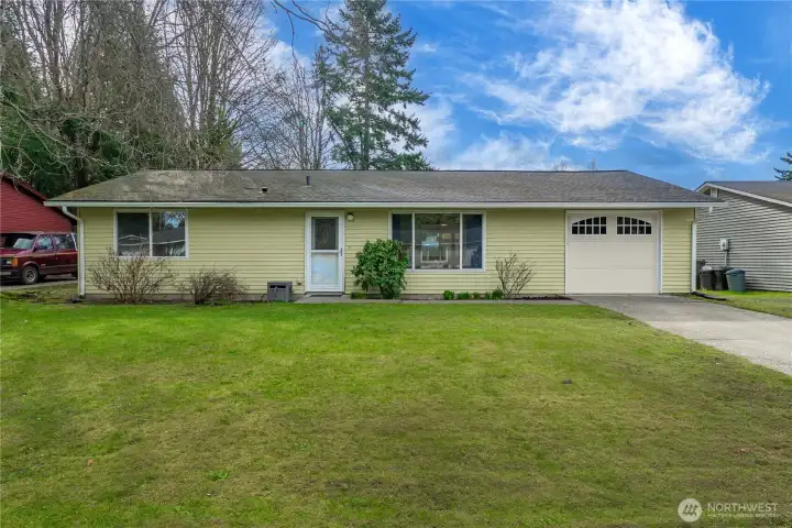 Cute well maintained rambler in a great area! Open concept living/dining area with kitchen. Hardwood flooring, large windows let in plenty of light. Plenty of counter and cabinet space. Spacious living room. Bathroom is LARGE with tub/shower combo. 3 bedrooms no carpet all laminate wood! Updated light fixtures and some fresh interior paint. Attached garage with long driveway for parking. Backyard has a great covered patio area so you can enjoy bbq and outdoor living year round! Level fenced backyard.