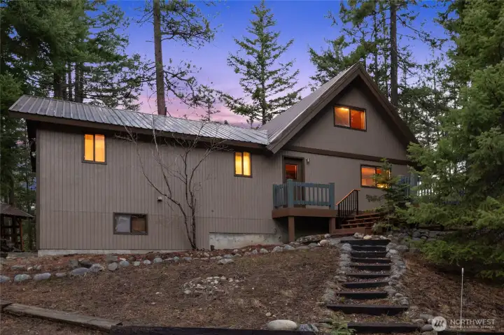 Classic Northwest mountain chalet nestled in the trees with beautiful lake views. This well-built, solid cozy cabin retreat has an iconic brick fireplace with hardwood floors, exposed beams, and a vaulted ceiling. Enjoy serene lake views both indoors & out with a wall of windows and a spacious deck, perfect for summer BBQs. Completely furnished, turn-key and move-in ready. Ample storage in the kitchen with 2 separate eating areas, tile floors & wood-wrapped ceilings. Two bedrooms & two baths on the main floor with a sleeping loft above. Entry with room for outdoor gear & extra storage in the unfinished basement on a full concrete foundation. Usable outdoor space, fenced dog run, woodshed and off-street parking. ATV use allowed on community roads with snowmobile trails all the way to Blewett Pass. Pineloch Sun is an incredible seasonal access community designed to enjoy four seasons of recreation with a lodge on the shores of Lake Cle Elum, outdoor pool, & sports courts. The neighborhood does allow short term rental use. Neighboring lot also available separately, MLS#2491318
