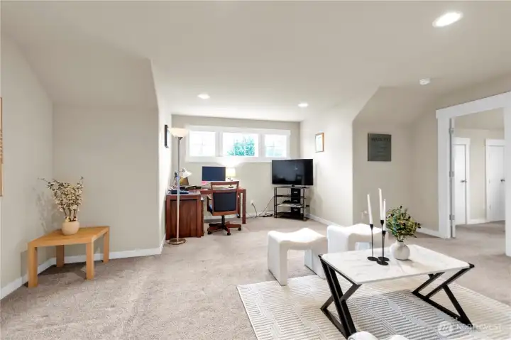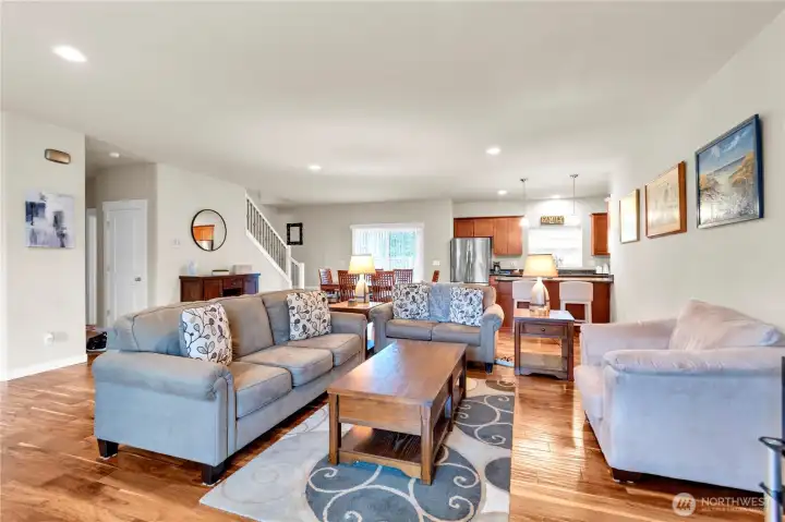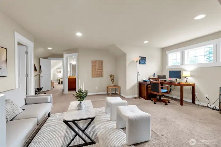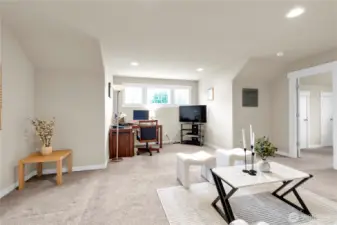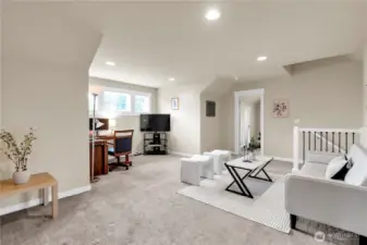 Welcome home to this spacious 2,690 sq ft residence in the desirable Renton Highlands. A fantastic opportunity for multi-generational living in a prime location! This versatile home offers 4 bedrooms, 2.5 baths, a den/office, and a 2-car garage—designed for comfort and flexibility in mind. The open-concept layout seamlessly connects the kitchen, living room, and dining area, creating the perfect space for both everyday living and entertaining. The main floor features a luxurious 5-piece primary bedroom (with full bath), along with a den/office and a convenient half bath—ideal for guests or working from home. The den/office on the main floor can be converted into a 5th bedroom (possible 2 bedrooms total on the main floor). Upstairs, you'll find a generous family room, three additional bedrooms, and a full bath, offering plenty of room for everyone. Recent upgrades include a New Furnace and a Heat Pump for year-round comfort and efficiency. Situated in a quiet cul-de-sac with street parking. Easy access to I-405, shopping, dining, and daily conveniences. NO HOA!!