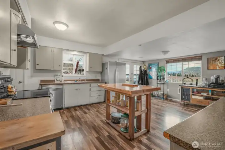 Charming, completely updated move-in ready home on 3.46 acres. The perfect blend of peaceful country living & modern amenities. Unique property w/ endless possibilities w/ plenty of room to spread out, garden, entertain & enjoy quiet beauty of surrounding hills & trees. Relax on front deck & take in serene views of rolling hills, trees & open sky. Home is bright, sunny & refreshed w/ new interior & exterior paint, flooring, windows, countertops & appliances. Main level w/ attractive laminate flooring & welcoming layout ideal for everyday living & entertaining. Living room flows into dining area, creating great entertainment value. Kitchen w/ lots of cupboard & prep space, SS appliances & cozy eating area w/ French doors leading outdoors that's perfect for indoor/outdoor dining. Two bedrooms & full bath on main level, while upstairs you’ll find private & spacious primary suite w/ its own bathroom w/ glass shower. Huge unfinished basement provides incredible potential for additional living space, workshop, storage or hobby area. Outside, enjoy incredible outdoor amenities including shop w/ carport & covered patio that's ideal for BBQs & gatherings. Garden enthusiasts will love the large garden area w/ greenhouse & raised beds. Plenty of room for toys, equipment & RV parking. All of this in a peaceful country setting, yet just minutes from fun dining and fun local spots for a night out. A rare opportunity to own a beautiful home with space to truly enjoy the country lifestyle.