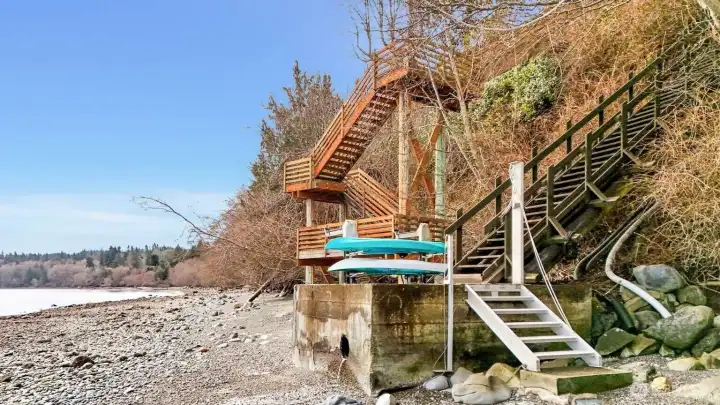 Fully remodeled waterfront home offering luxury, high-end finishes throughout. Complete 180-degree expansive views of the Cascade Mountains as well as Whidbey, Marrowstone, and Indian Islands. Secluded beach with private access along 267+ feet of shoreline, complete with a boat lift and kayak rack. Situated on more than 5.5 acres, including a separate 2-acre buildable lot. Additional improvements include a 1,700 sq ft detached garage with shop space and half bathroom, a boat house, a large outdoor pavilion with nearby RV hookups (power and water, no sewer), and multiple tool sheds for additional storage. This property provides a turn-key waterfront residence with future building potential and possible RV rental income opportunities.